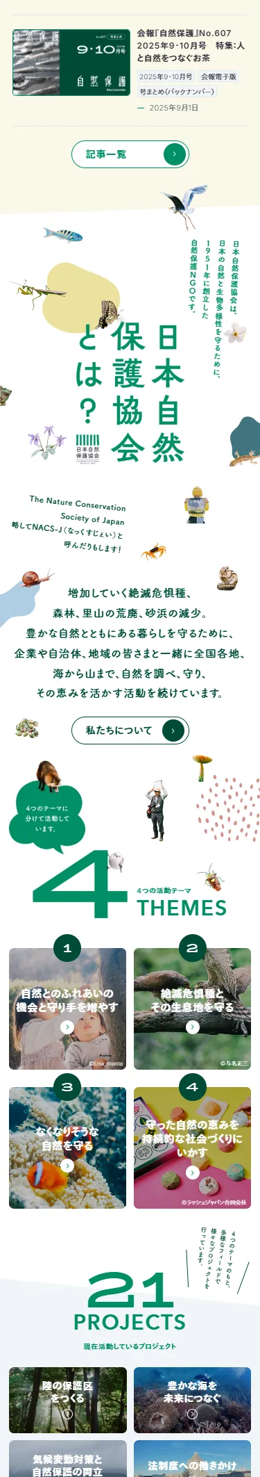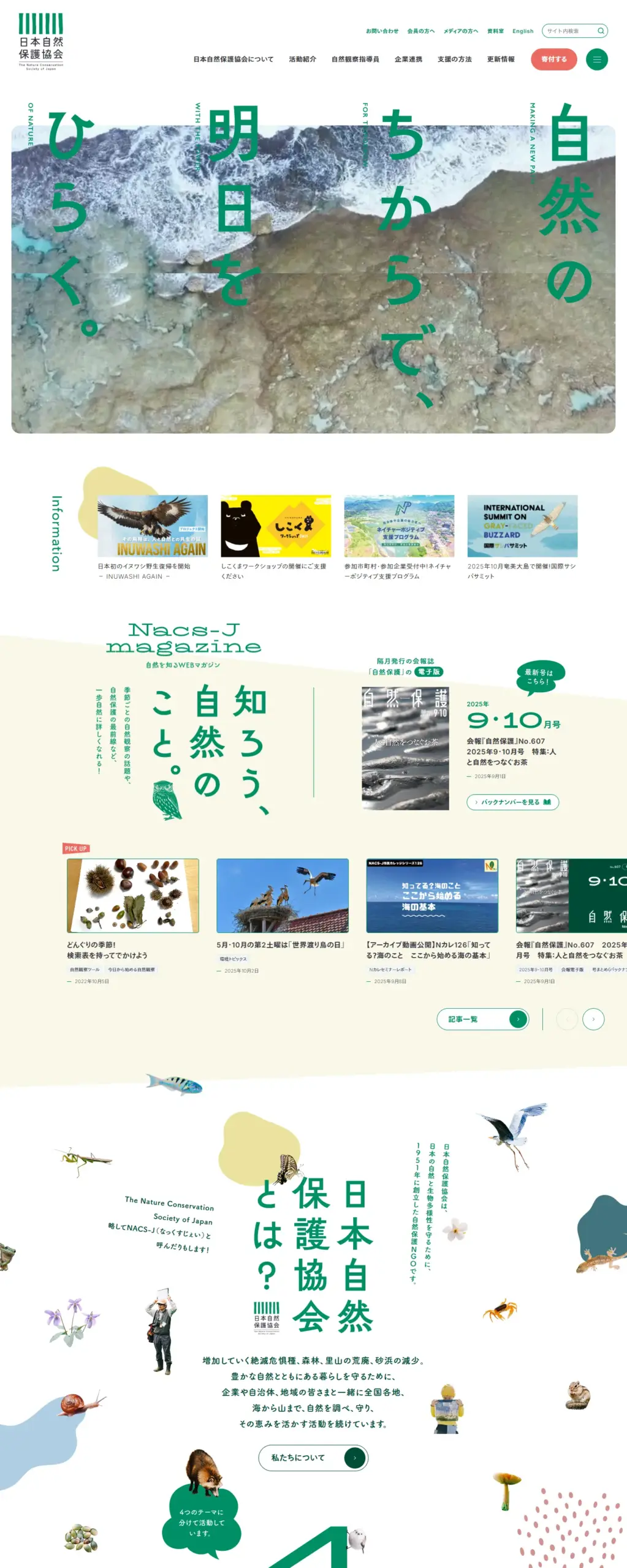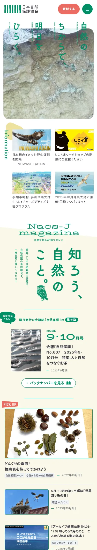 公益財団法人日本自然保護協会(NACS-J)は、1951年から、独立性・透明性・公平性・科学性を重視して活動を行う自然保護NGOです。世界の最新動向を把握しながら、全国の自然観察指導員・サポーター団体・企業や市民一丸となって、「自然のちからで、明日をひらく。」自然保護活動を展開しています。