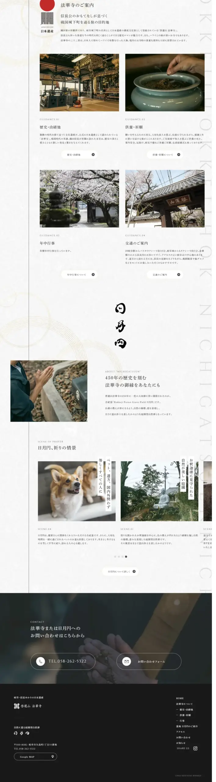 日本遺産「啓運山 法華寺」(所在地:岐阜県岐阜市)は織田家の祈願所として開山。岐阜城下町の名所として日本遺産に登録され、信長公が訪れた足跡を辿ることができます。仏前結婚式や七五三の法要、自然葬「日月円」まで命の誕生から旅立ちまで寄り添います。