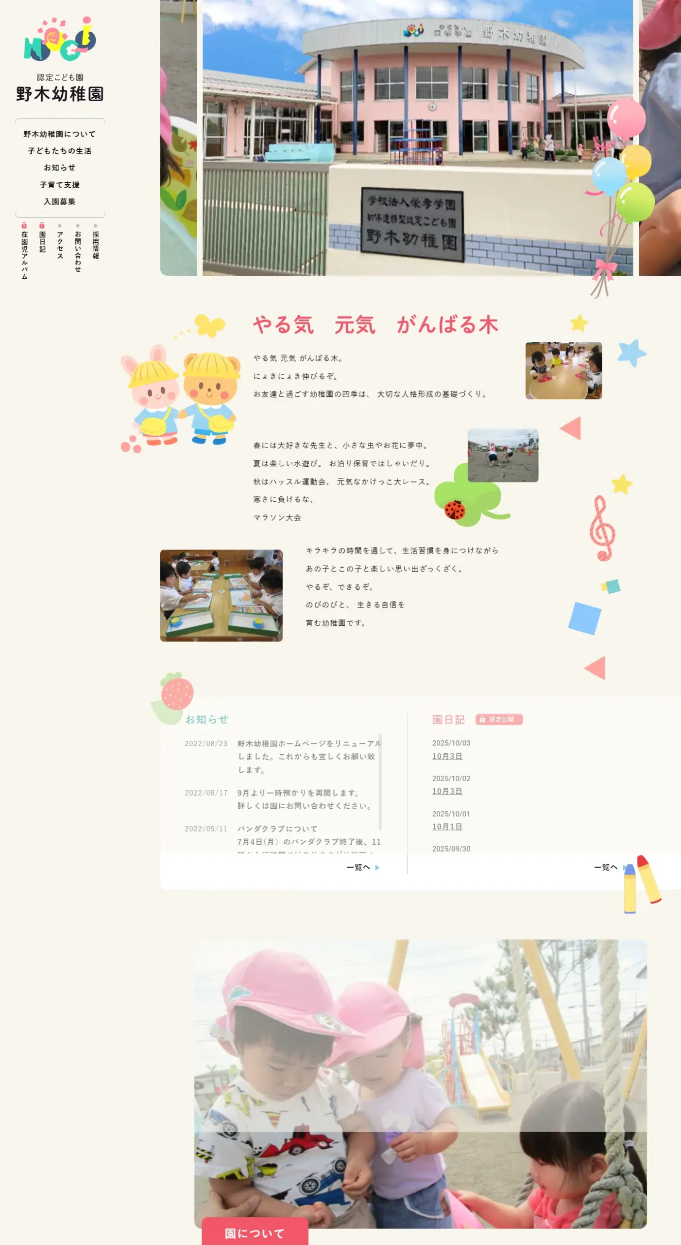 認定こども園 野木幼稚園[のぎようちえん]トップページ|栃木県下都賀郡の認定こども園です。