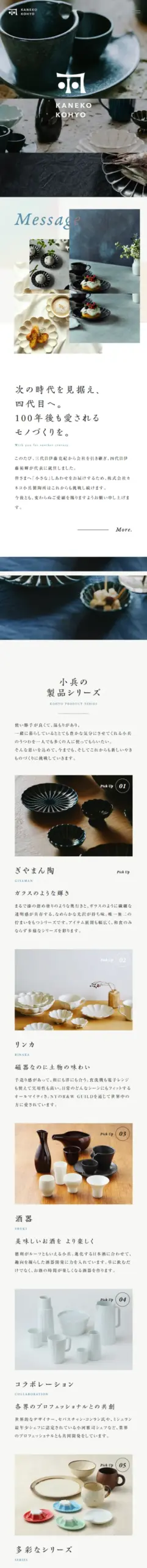 大正10年創業、株式会社カネコ小兵製陶所は、岐阜県土岐市の美濃焼の窯元です。使い勝手が良くておしゃれ、温もりのあるうつわで「食」と「人」を繋ぎます。ぎやまん陶やリンカシリーズをはじめ、世界に響きあう製品づくりに取り組んでいます。