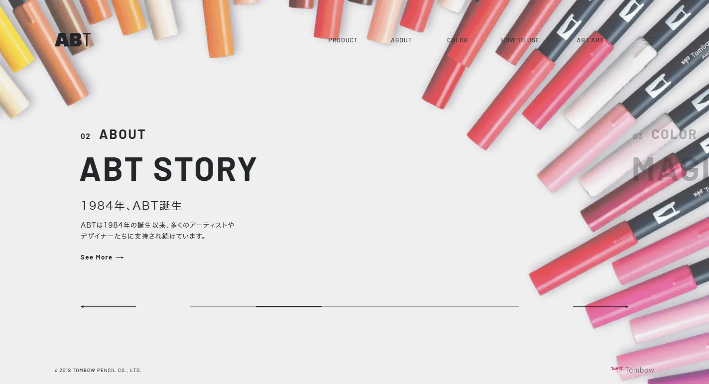 1984年、トンボ鉛筆から誕生したプロ向けの画材として開発された「グラフィックマーカー」ABTのブランドサイトです。