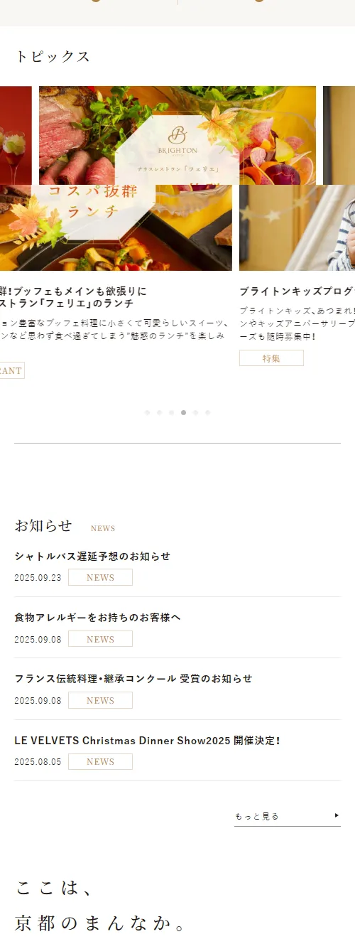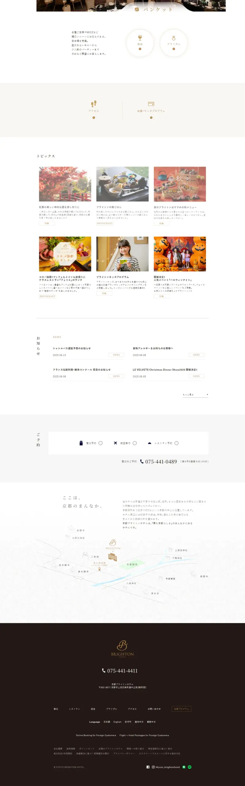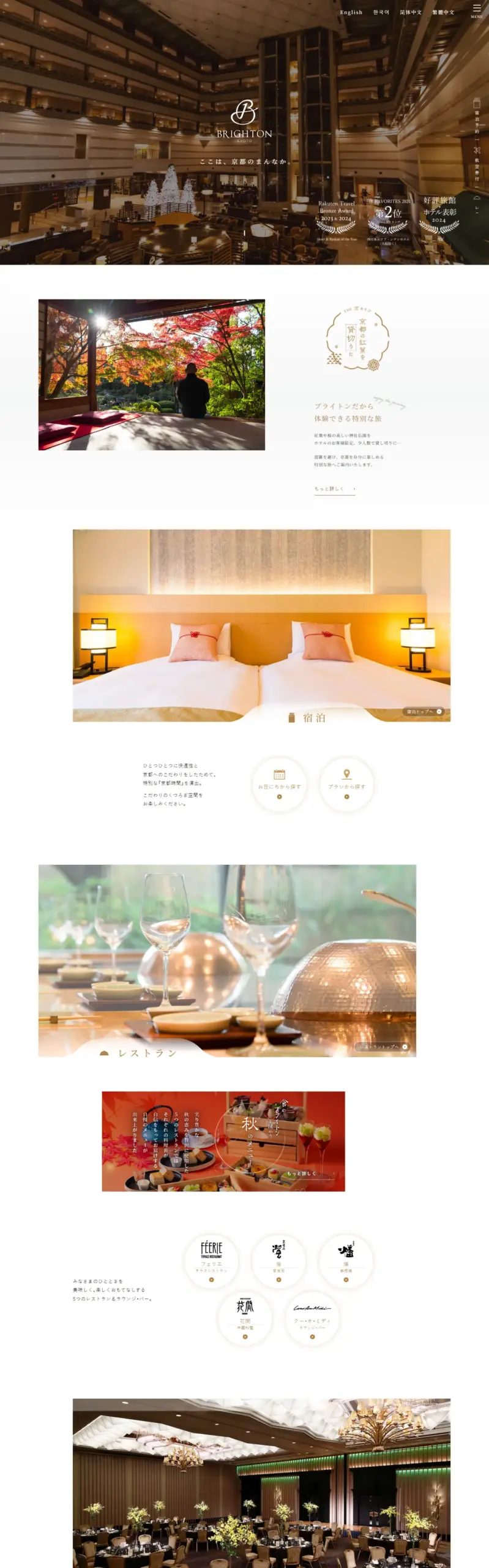 京都ブライトンホテル公式サイト。京都ブライトンホテルは京都御所の西側に位置し、ご宿泊のお客様には広く快適な部屋をご用意。5つのレストランは全て直営で自慢の料理を提供しています。会議やパーティー,ご披露宴などにも対応できる宴会場も有しています。
