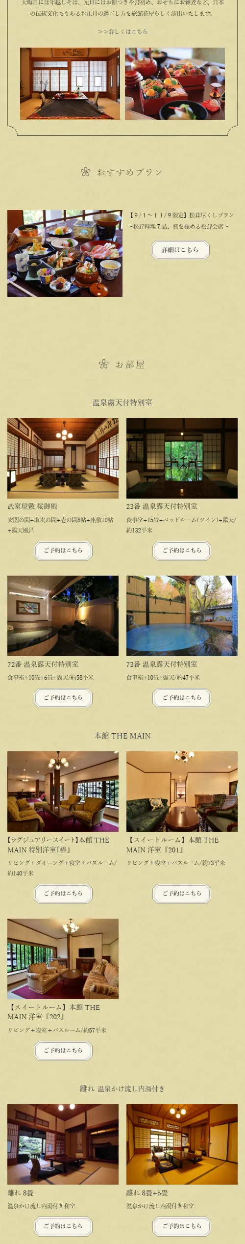 長野県/信州・別所温泉で唯一「文化庁登録有形文化財」大正六年より創業百年を超える老舗の温泉旅館。心のこもったおもてなしとひとつひとつ手作りの会席料理、当地最大湯量の天然温泉を源泉かけ流しでご堪能頂けます。別所温泉駅から徒歩5分と駅に最も近い旅館で、名勝「北向観音」から徒歩5分と散策もお楽しみ頂けます。自然豊かな6500坪の広大な敷地に点在する木造建築が渡り廊下で結ばれている回廊庭園の中で、大正浪漫漂う非日常のひとときを。