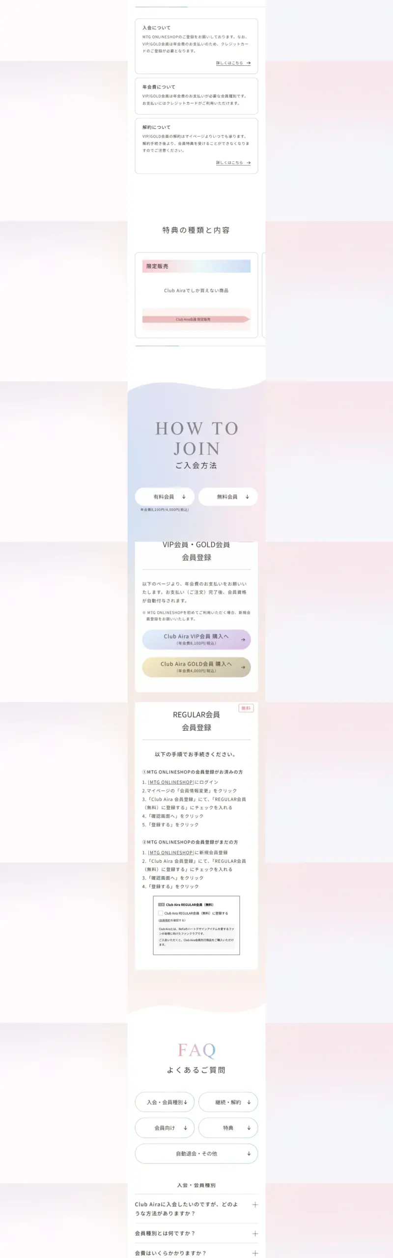 Club Airaは、毎日に小さなときめきを届ける会員制のビューティープログラムです。先行販売・会員特典などをご用意。日常に、もっとハートのときめきと彩りを。 会員特典部分を少しは入れた方がいいので調整しました。