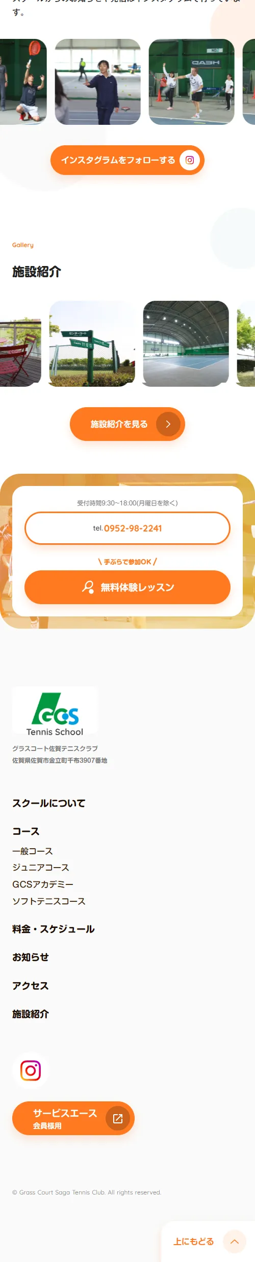 グラスコート佐賀テニススクールは佐賀県佐賀市金立町にあるインドアのテニススクールです。小さなお子様から大人まで笑顔で楽しくテニスライフを送っていただいています!スタッフ一同”元気いっぱい”でお待ちしております。