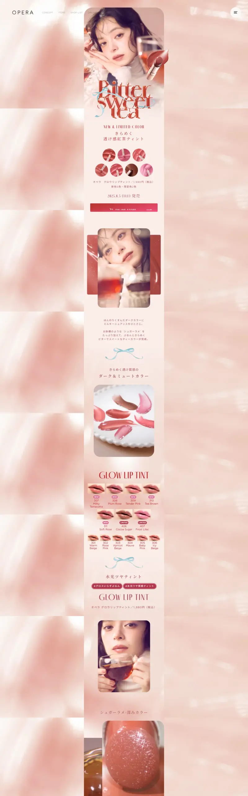 オペラグロウリップティント2025年秋の新色限定色「きらめく透け感紅茶ティント」のスペシャルサイトです。