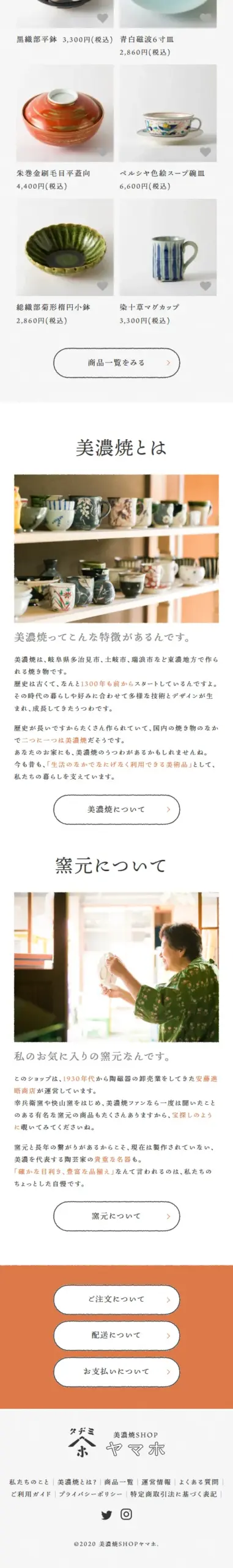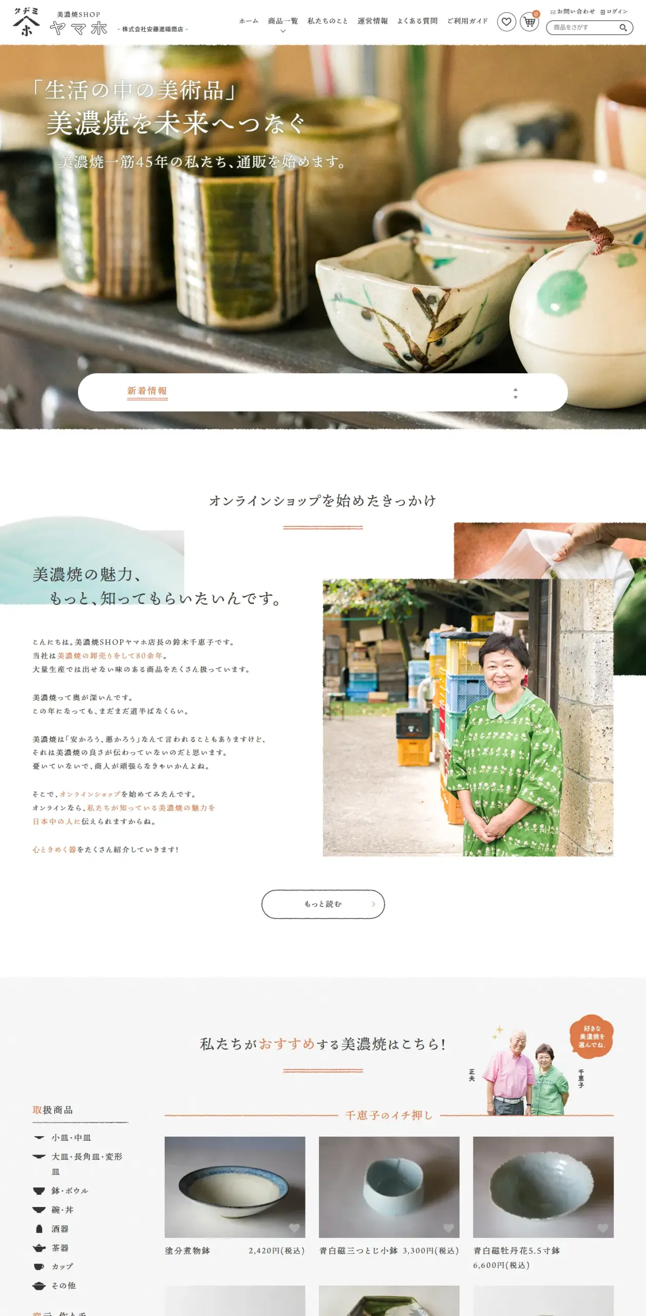 美濃焼SHOPヤマホは、80年以上の歴史のある株式会社安藤進晤商店が運営するネット通販サイトです。伝統的なものからモダンでおしゃれなものまで幅広くございます。やきもの好きのあなたを満足させる1,000点以上の美濃焼を揃えております。