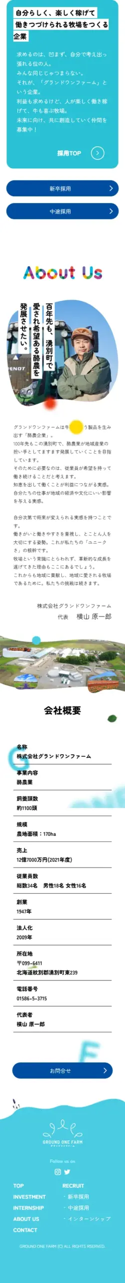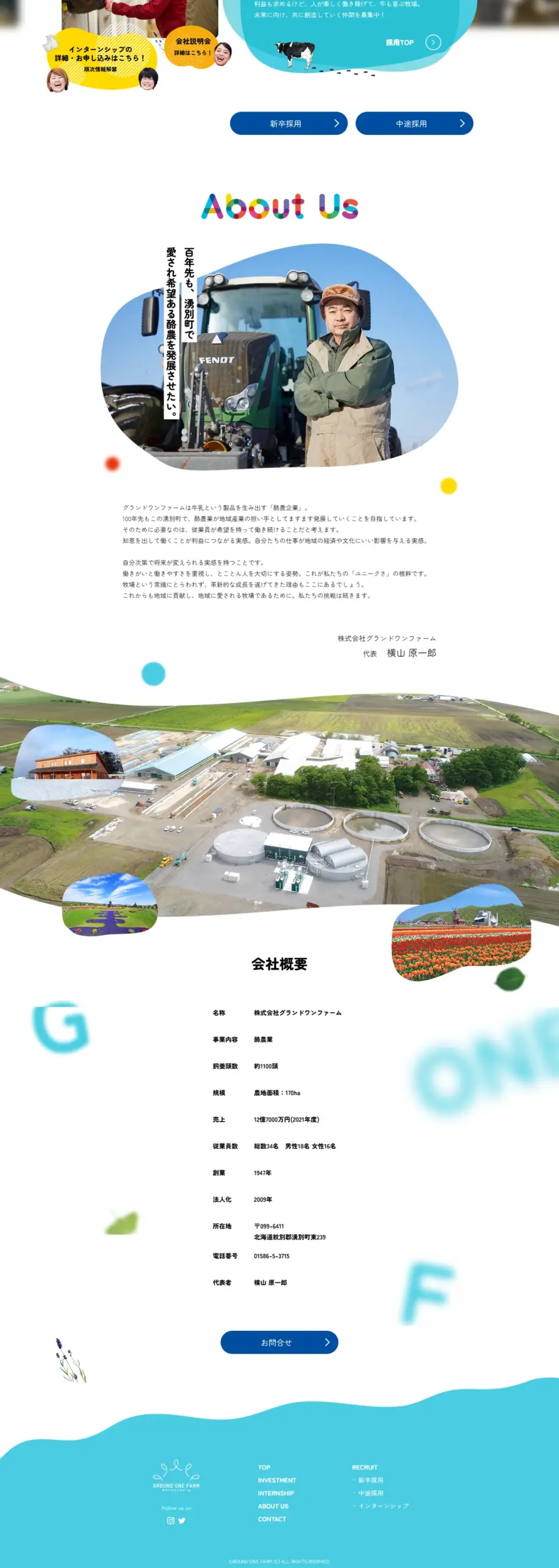 株式会社グランドワンファームは、北海道湧別町にあるユニークな酪農牧場です。サロマ湖とオホーツク海に囲まれた雄大な自然の中で作った牛乳を食卓にお届けしています。変わり続ける当社では『ユニークな牧場』をスローガンに、酪農牧場の常識にとらわれない私たちらしく働く形を模索しています!新卒・業界未経験者、インターンも歓迎!