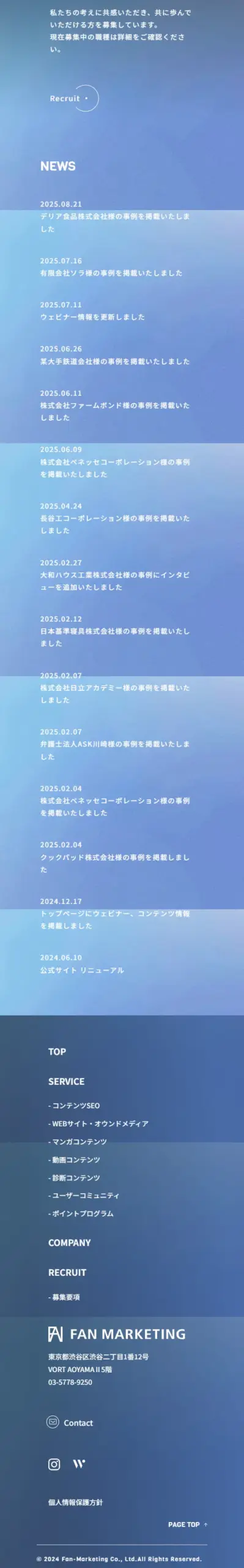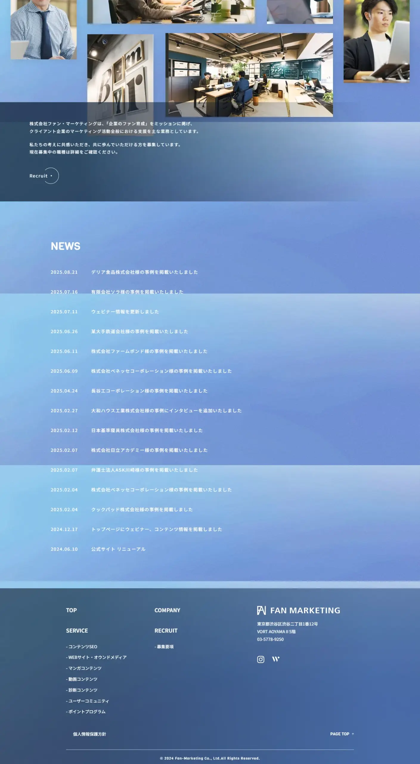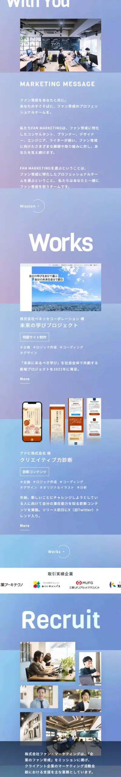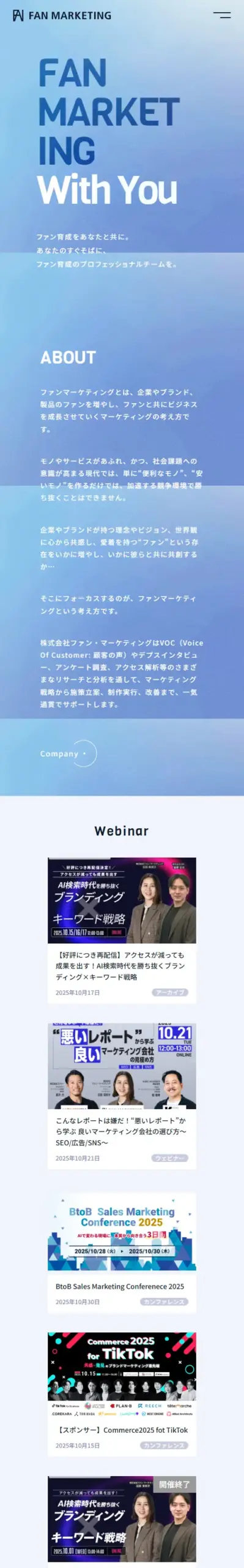 株式会社ファン・マーケティングはWebサイトやコンテンツ制作をはじめとしたウェブマーケティング施策を通じて、お客様のファン育成に取り組む、マーケティングコンサルティング企業です。