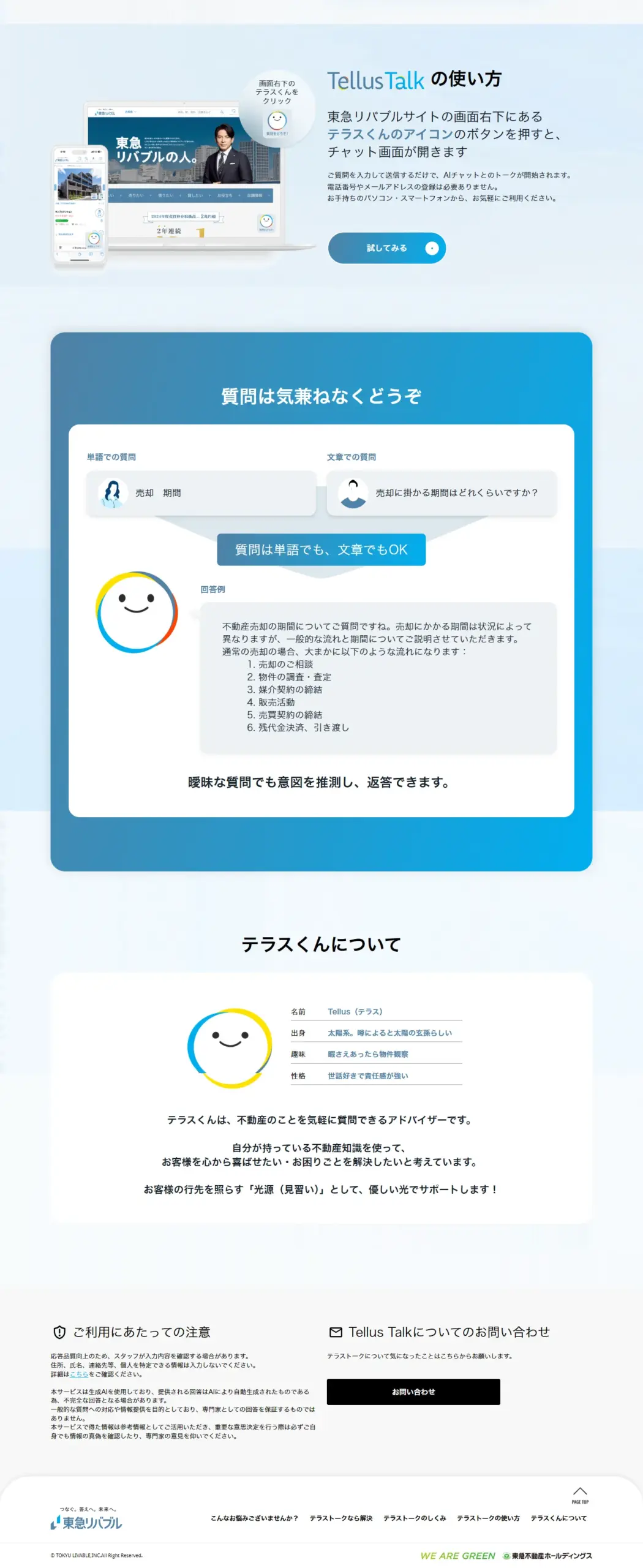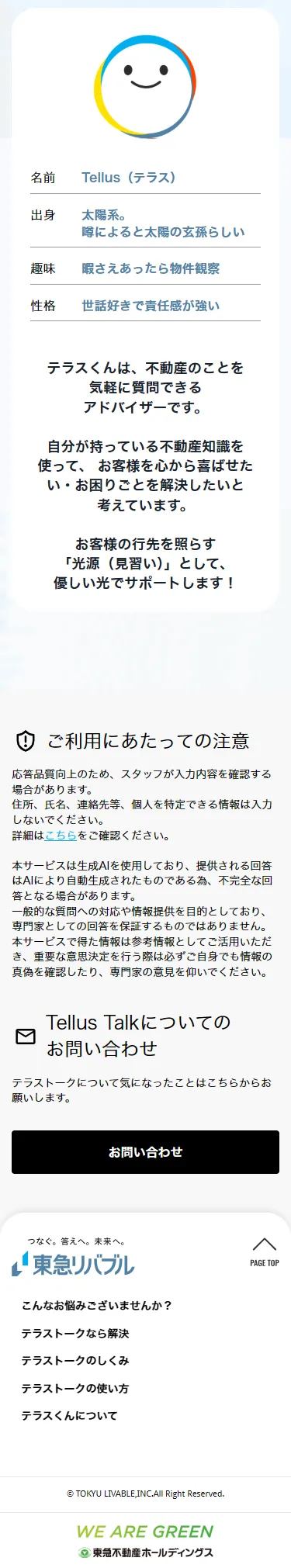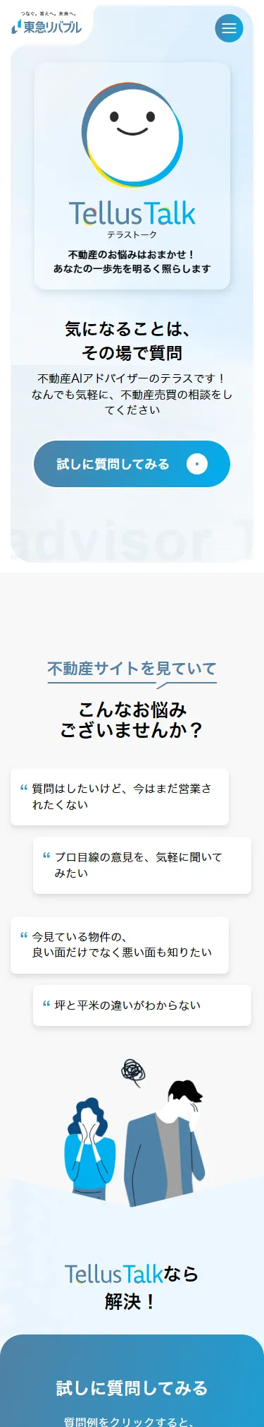 不動産AIアドバイザー「Tellus Talk(テラストーク)」リバブルの生成AIチャット|東急リバブル