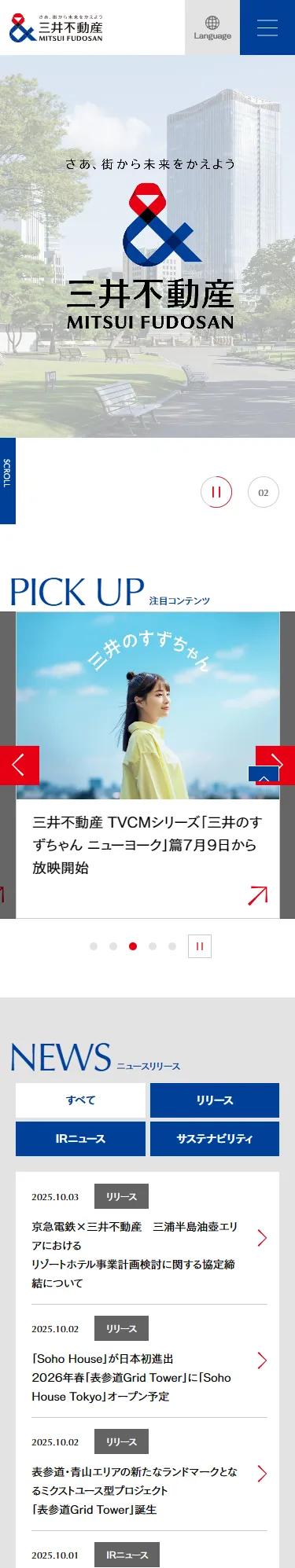 三井不動産の公式ウェブサイトです。会社情報、事業紹介、IR情報やESG/サステナビリティにおける取り組みを発信していきます。