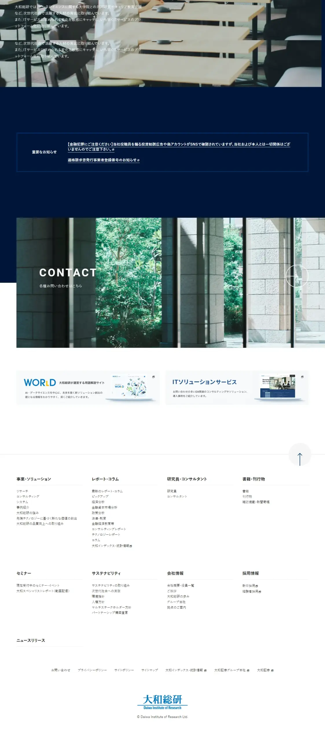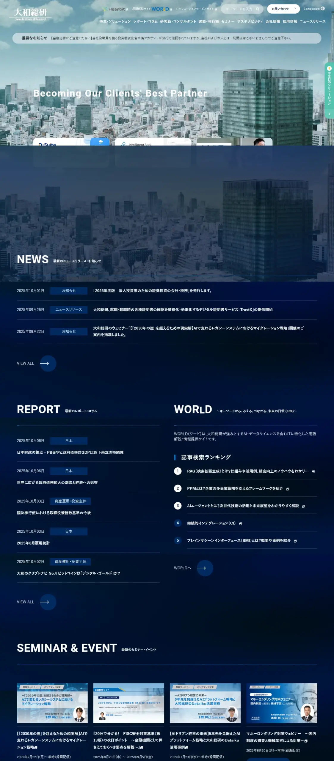 大和総研の公式サイト。リサーチ、コンサルティング、システムのスペシャリストが連携し社会に貢献。高いクオリティと先端テクノロジーの知見に基づく新たな価値を創出します。