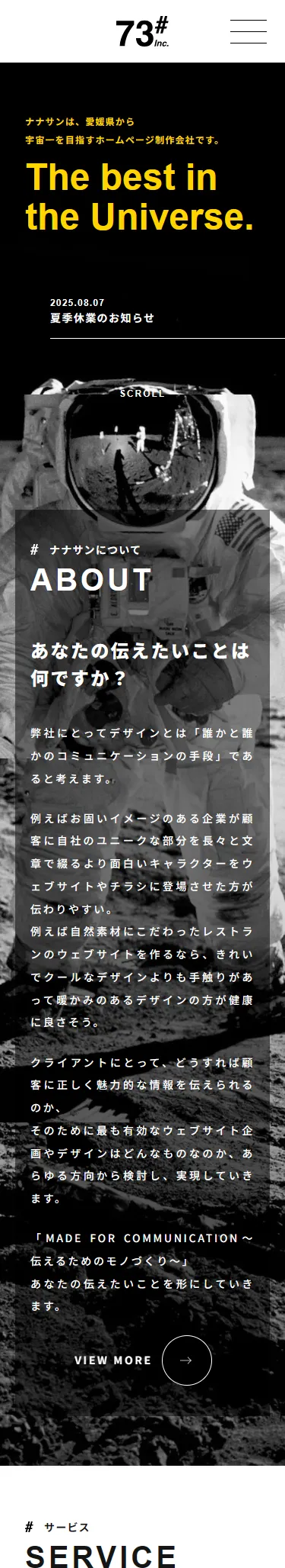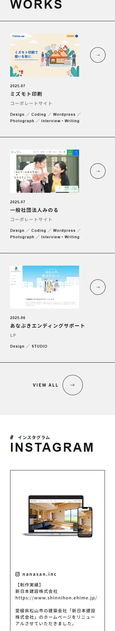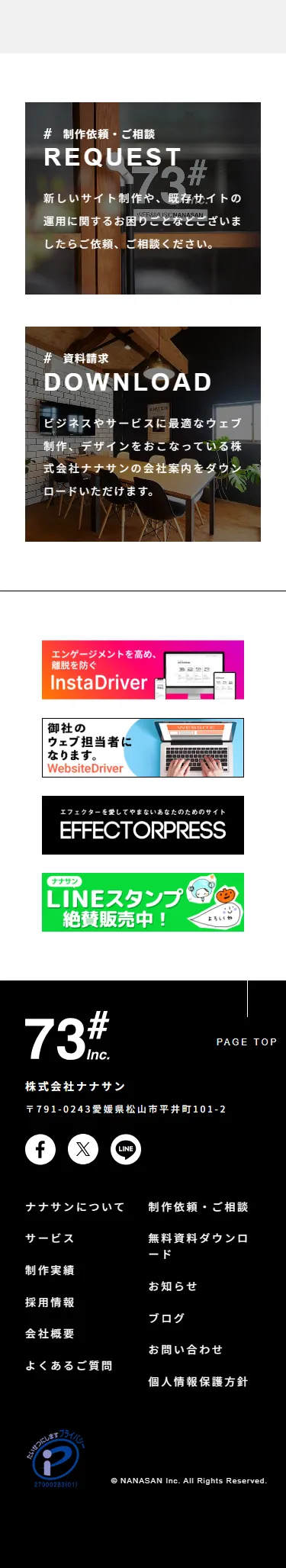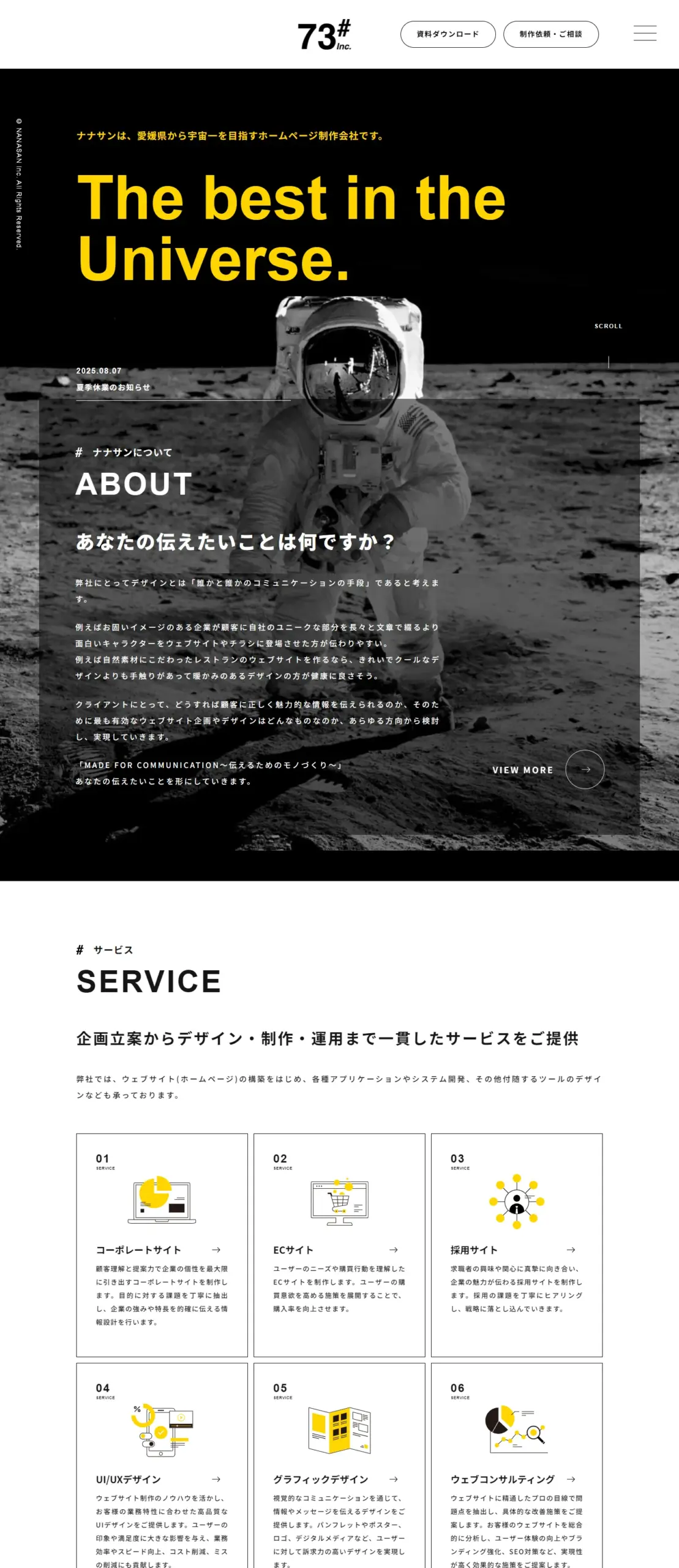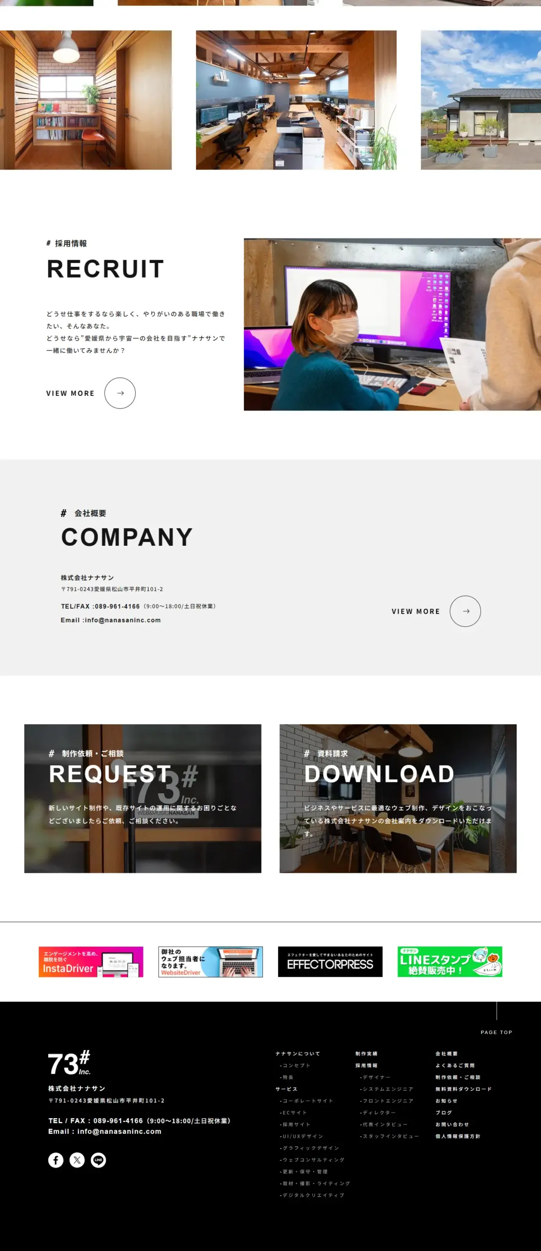 株式会社ナナサンは、ホームページ制作・WEBデザイン、WordPress等のCMS構築、ECサイト構築等を行う愛媛県のホームページ制作会社です。企画から制作、保守管理・アフターサポートに至るまで一貫したサービスをご提供いたします。