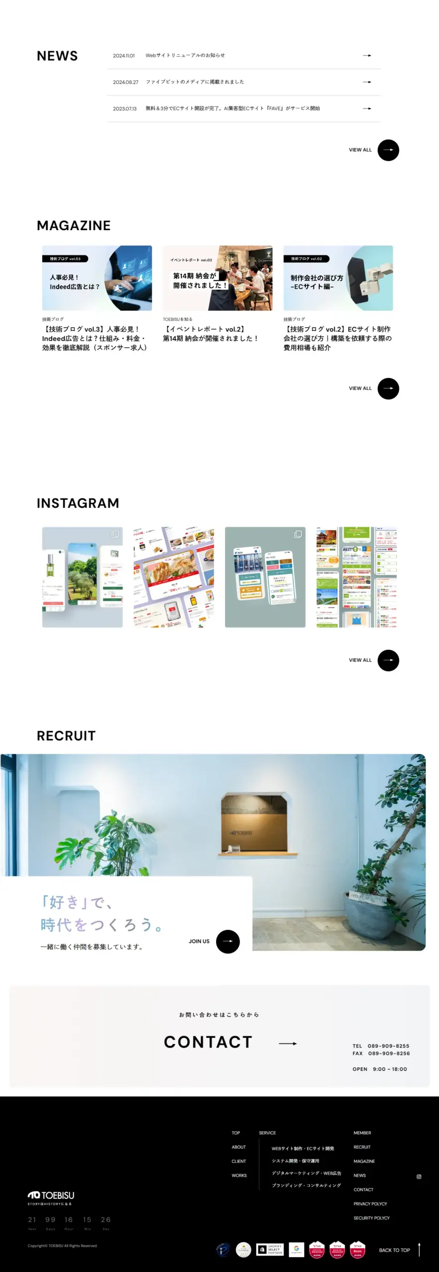 愛媛でホームページ制作を依頼するならトエビス株式会社。企業サイト・ECサイトの制作、システム開発、集客支援までワンストップ対応!無料相談受付中。