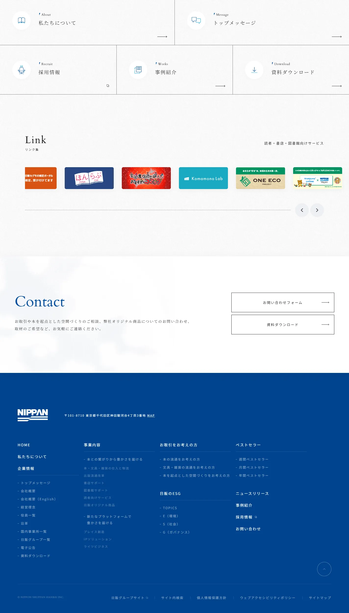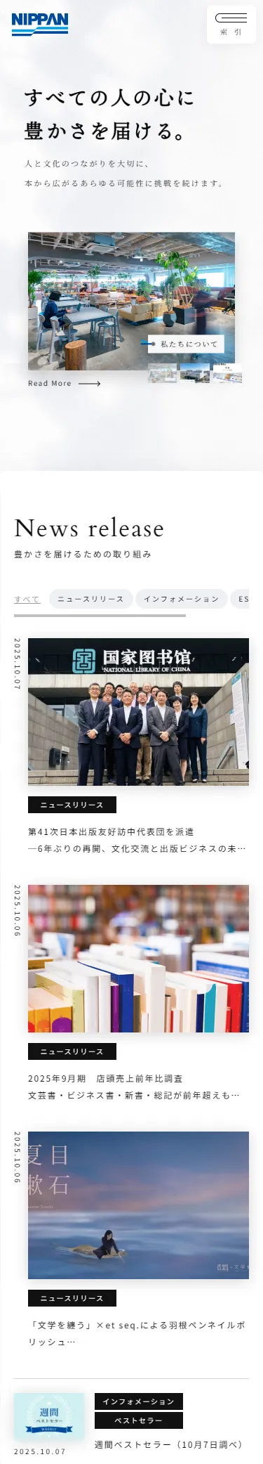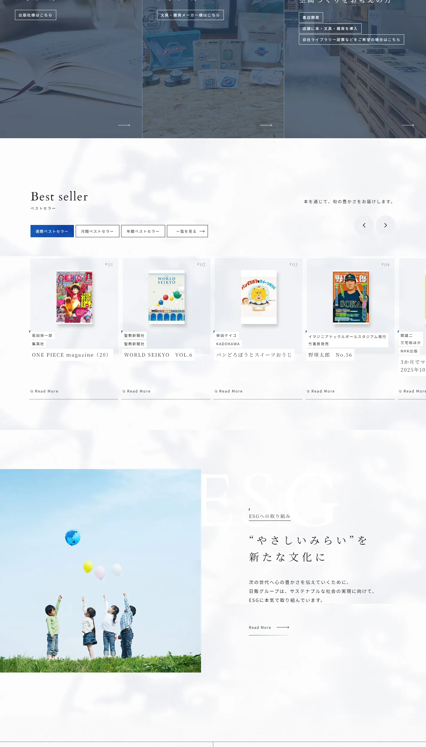 私たち日本出版販売株式会社(日販)は、1949(昭和24)年の創業以来、書籍・雑誌の流通を担う出版販売会社(出版取次)として、文化の普及発展に貢献すべく、不断の努力を続けてまいりました。現在では国内最大規模の出版販売会社としての地位を確固たるものとしております。