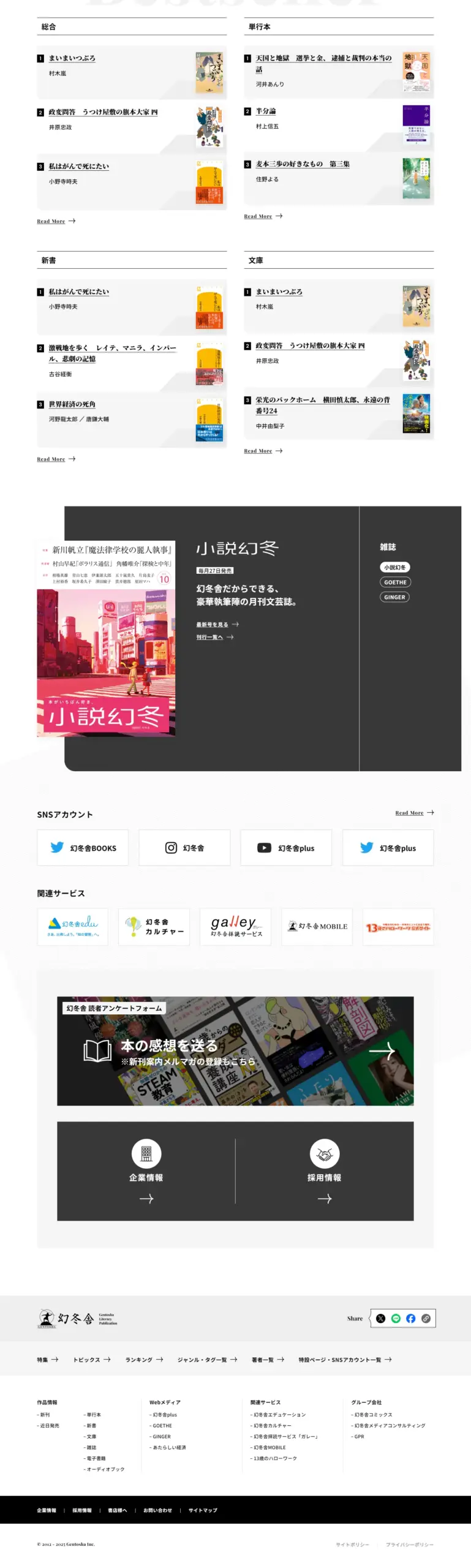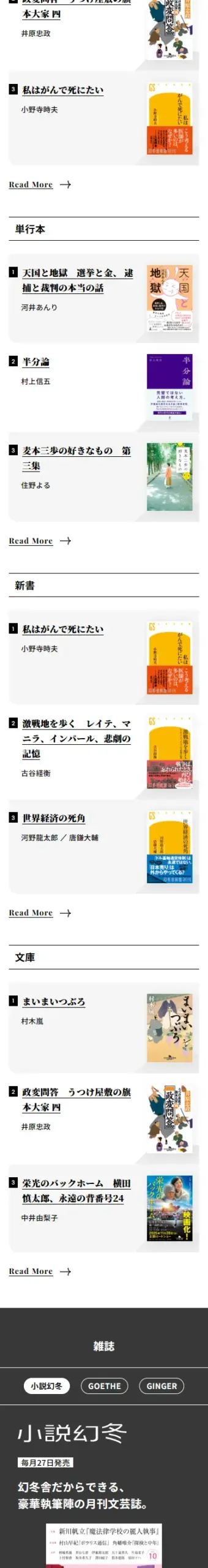 幻冬舎の公式サイト。単行本、新書、文庫、雑誌、コミック、電子書籍、オーディオブックなど注目の新刊や話題作を試し読み。特典・イベント、採用情報も。