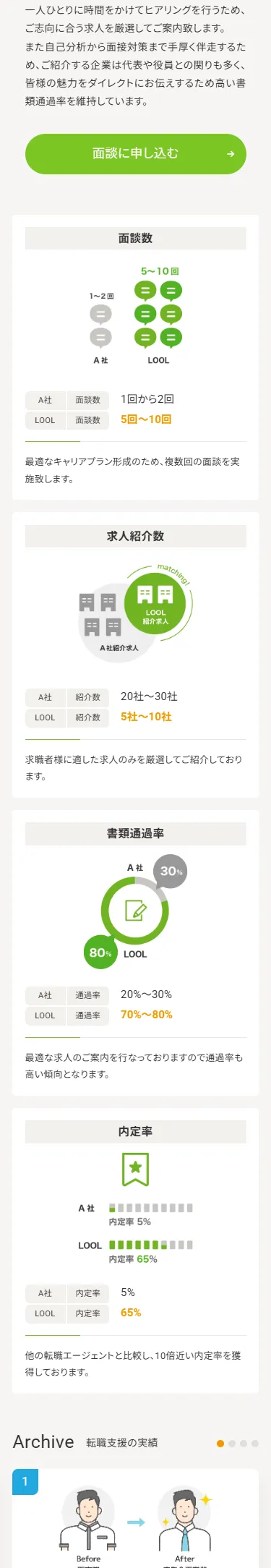 20代の未経験チャレンジの転職エージェント株式会社LOOLの公式サイトです。一人ひとりに時間をかけてヒアリングを行うため、ご志向に合う求人を厳選してご案内。皆様の魅力をダイレクトにお伝えするため高い書類通過率を維持しています。まずは転職相談予約よりご相談ください。