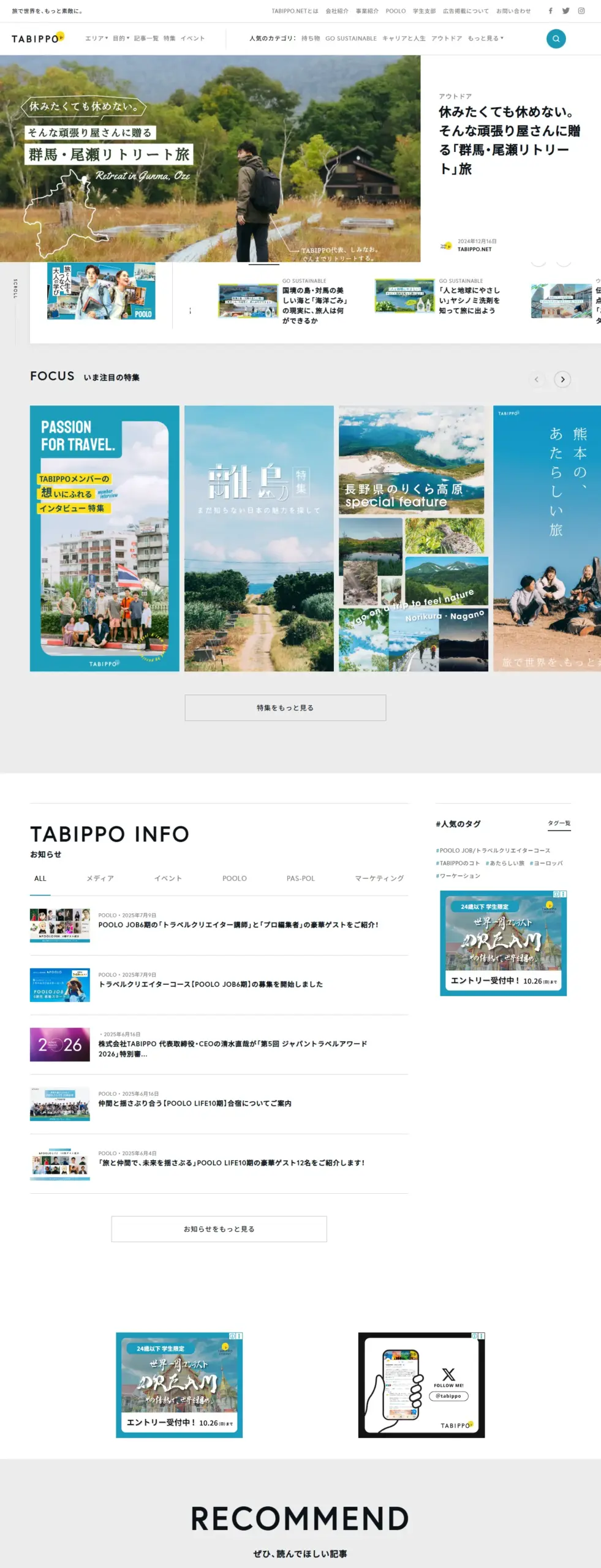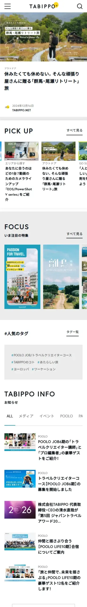 TABIPPO.NETは旅をテーマにした総合WEBメディアです。これからの時代の、多様な旅を若者に提案します。「旅で世界を、もっと素敵に」をビジョンに掲げる株式会社TABIPPOが運営しています。