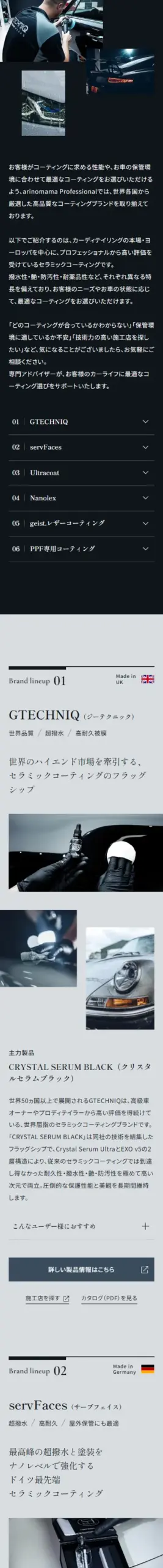 arinomama Professionalでは、専門アドバイザーが最適なセラミックコーティングをご提案。高品質なカーコーティングブランドを掲載し、全国の専門店をブランド別・地域別に検索可能。お客様の好みや用途に応じて、おすすめの施工プランもご案内します。