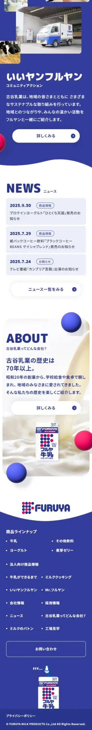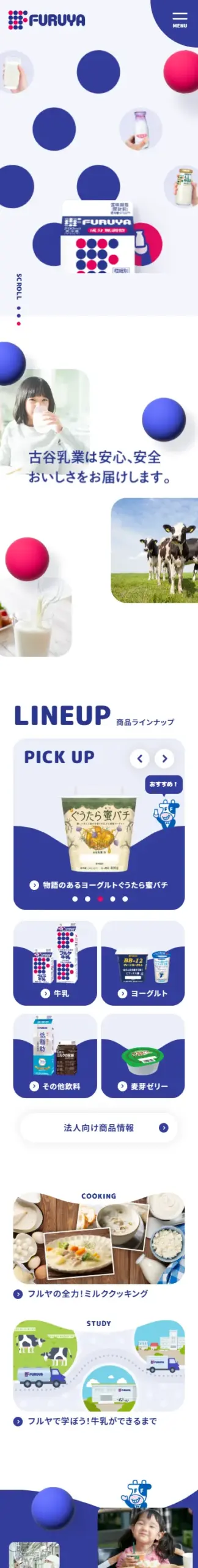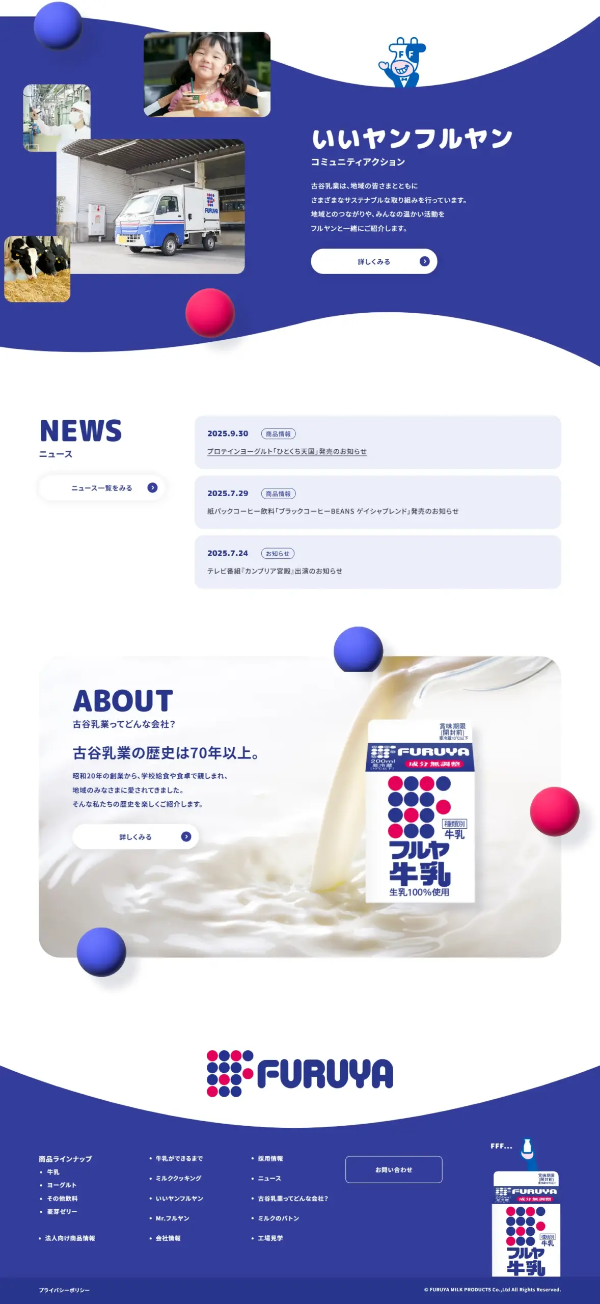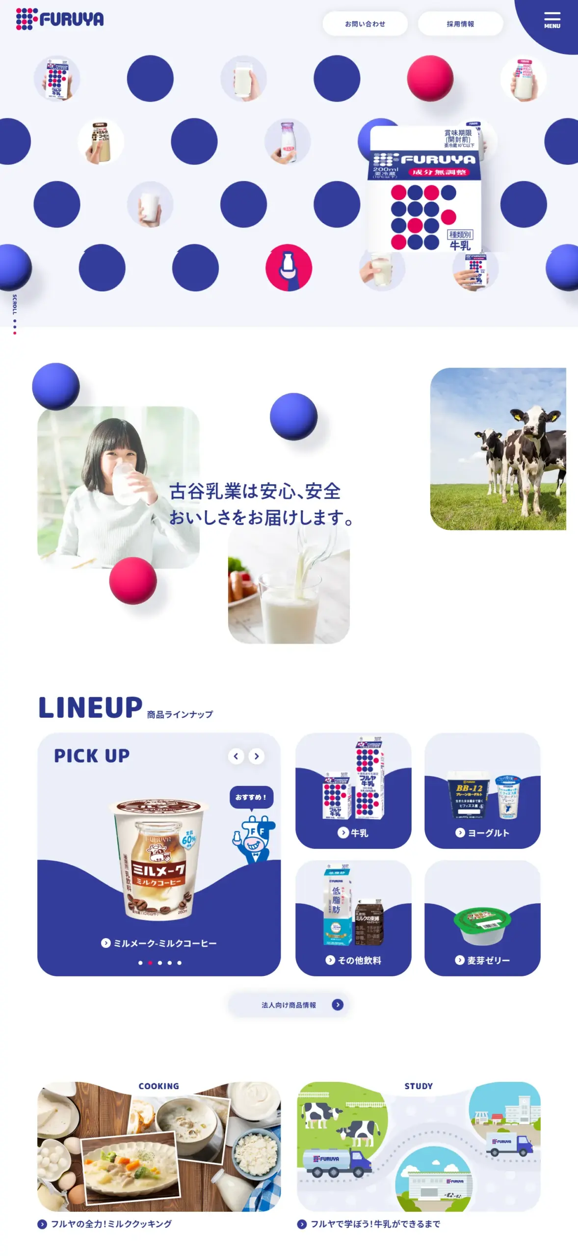 古谷乳業株式会社のWebサイトです。牛乳やヨーグルトをはじめとする乳製品、果汁飲料・清涼飲料・プリン・ゼリーの製造販売を行っています。商品情報や会社情報、ニュース、レシピコンテンツなどをご紹介します。