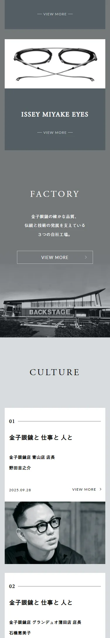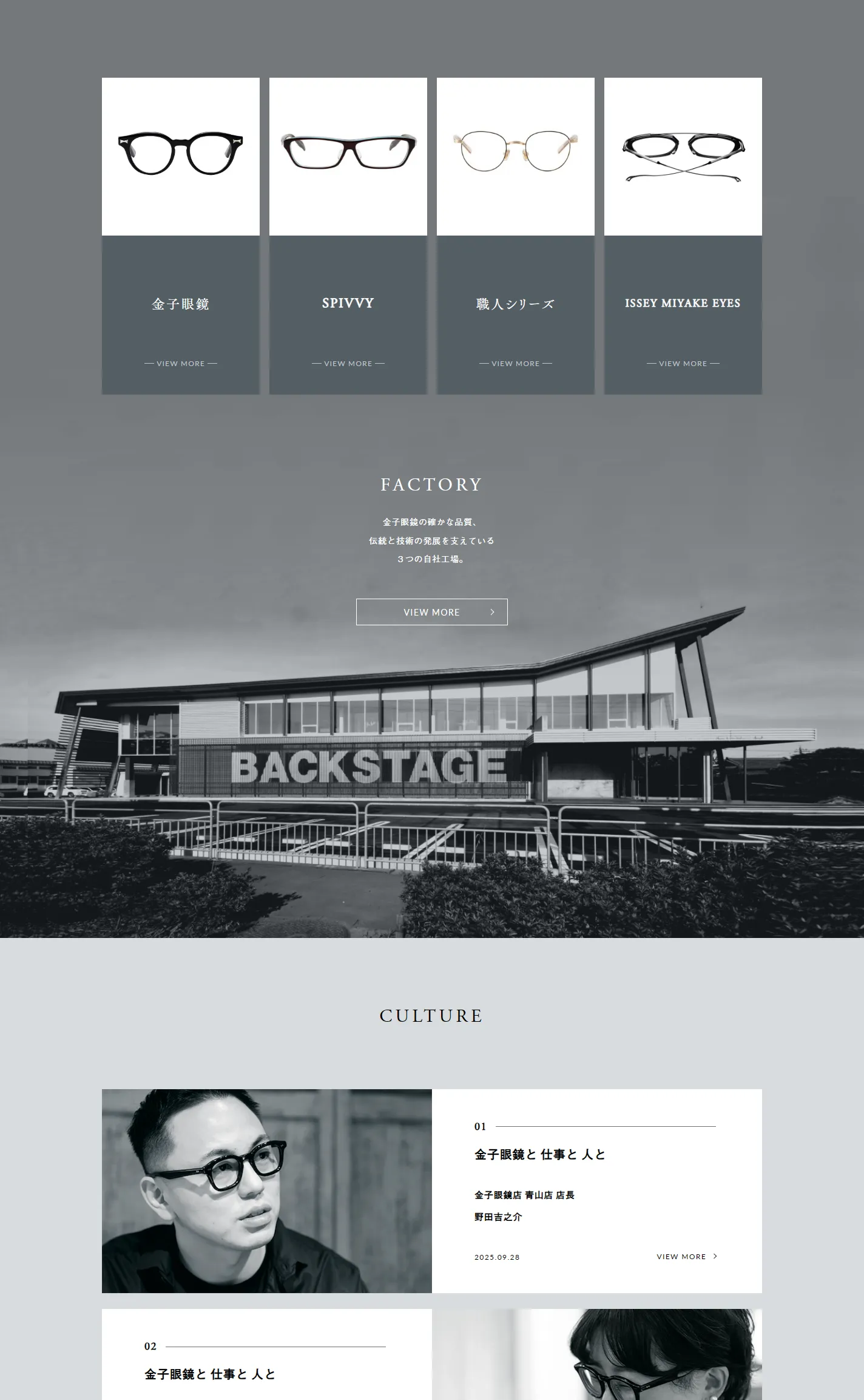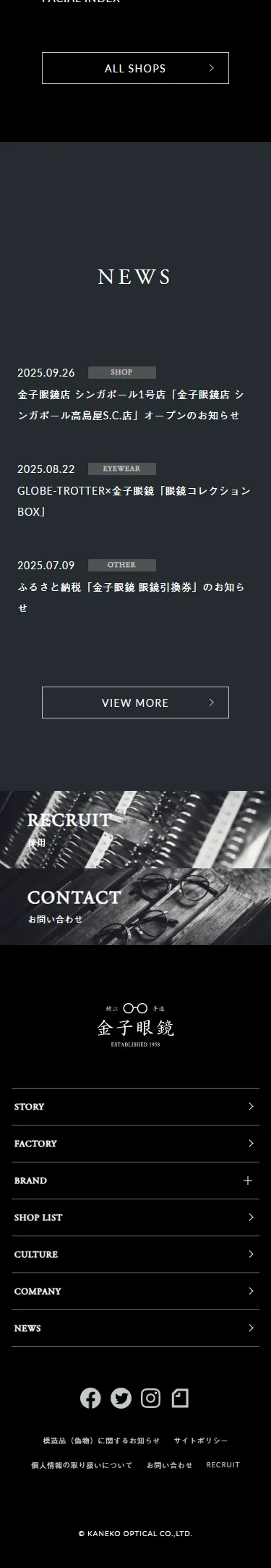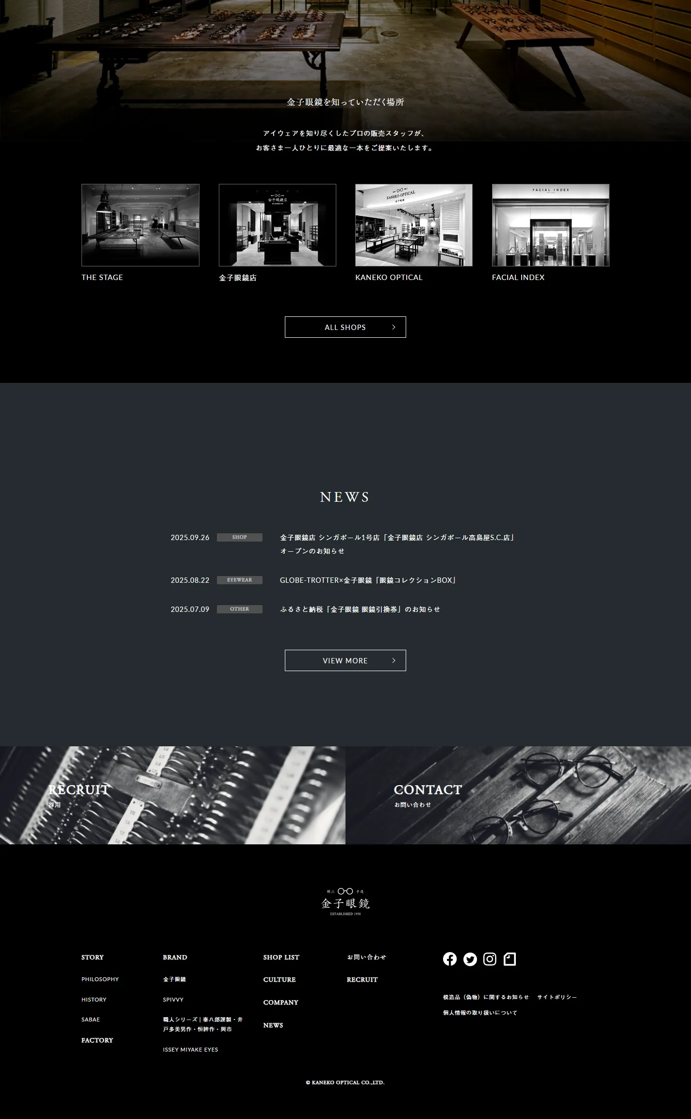 金子眼鏡店、KANEKO-OPTICAL(カネコオプチカル)などを運営する金子眼鏡株式会社の公式サイトです。企業情報やショップリスト、ブランドの最新ニュースをご紹介しています。