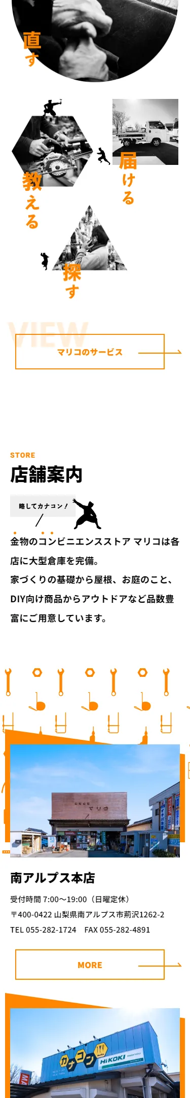 金物のコンビニエンスストア(略してカナコン!)マリコは各店に大型倉庫を完備。 家づくりの基礎から屋根、お庭のこと、DIY向け商品からアウトドアなど品数豊富にご用意しています!