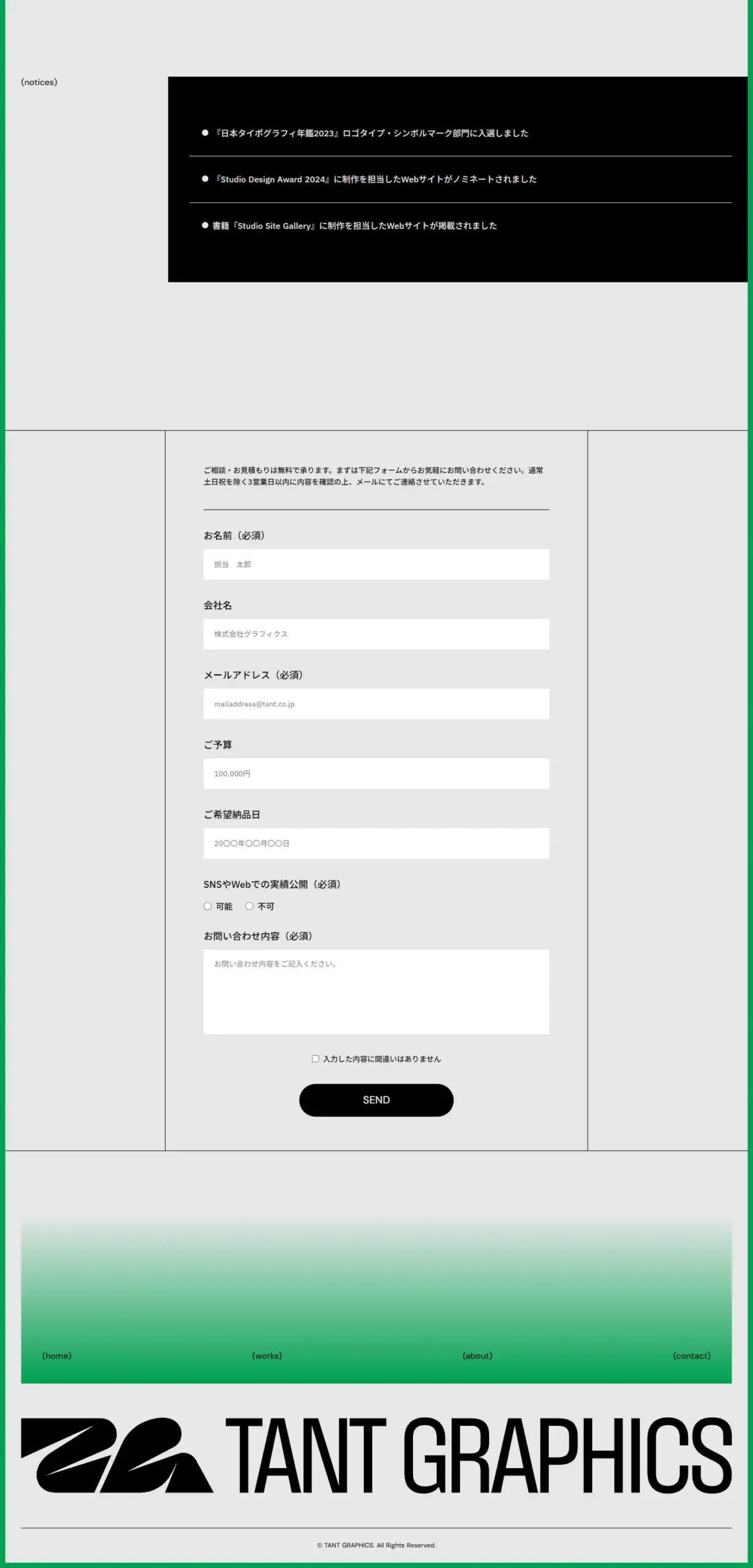 TANT GRAPHICSはビジュアルデザインによって、お客様の持つ価値を視覚化する総合デザインスタジオです。価値の本質を見極め、情感に訴えかけるアウトプットで魅力を最大化します。