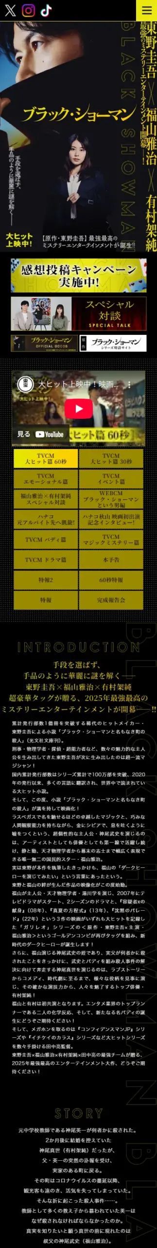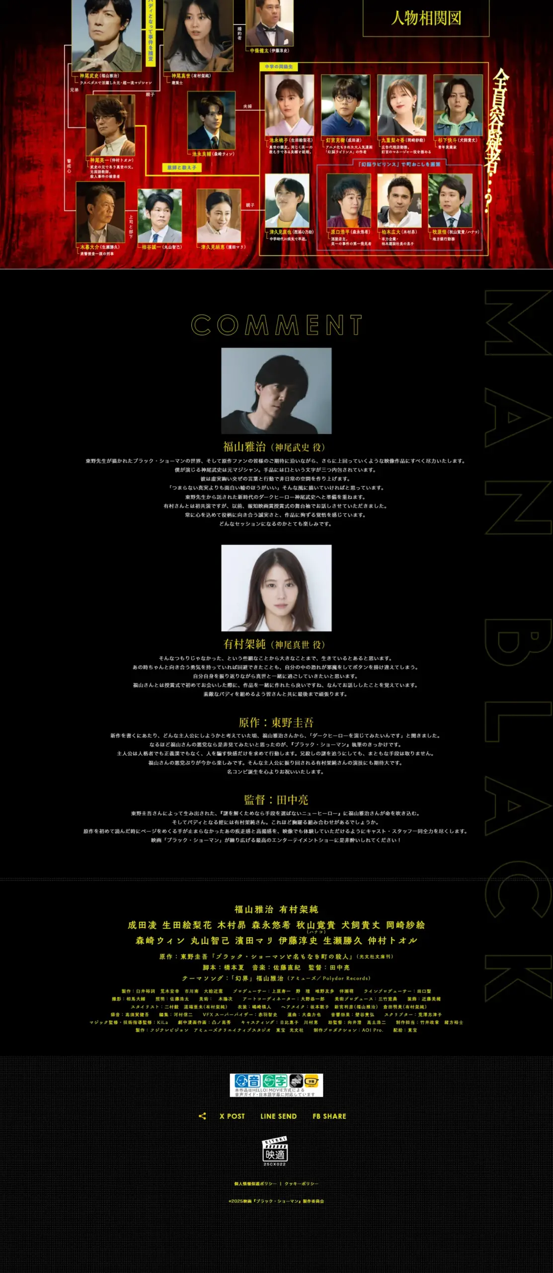 大ヒット上映中! 手段を選ばず、手品のように華麗に謎を解く―― 東野圭吾×福山雅治×有村架純 超豪華タッグが贈る、2025年最強最高のミステリーエンターテインメントが開幕――