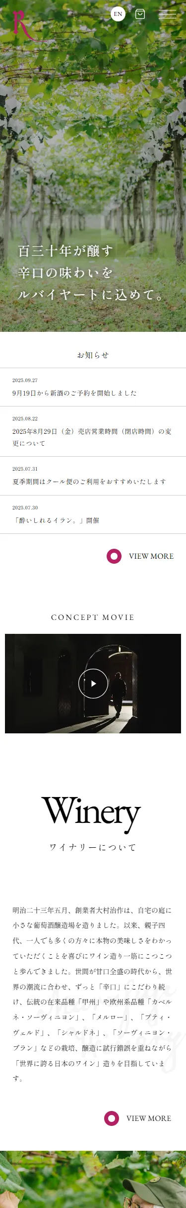 明治30年創業。山梨県甲州市勝沼で130年以上にわたりワイン造りに関わってきた、ルバイヤートワイン(丸藤葡萄酒工業)の公式サイトです。