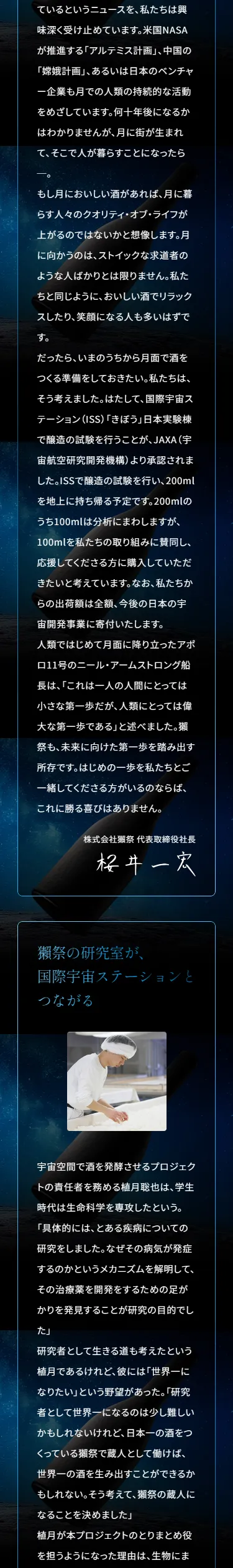 獺祭MOONプロジェクト─宇宙空間で獺祭を造る挑戦 | 株式会社 獺祭