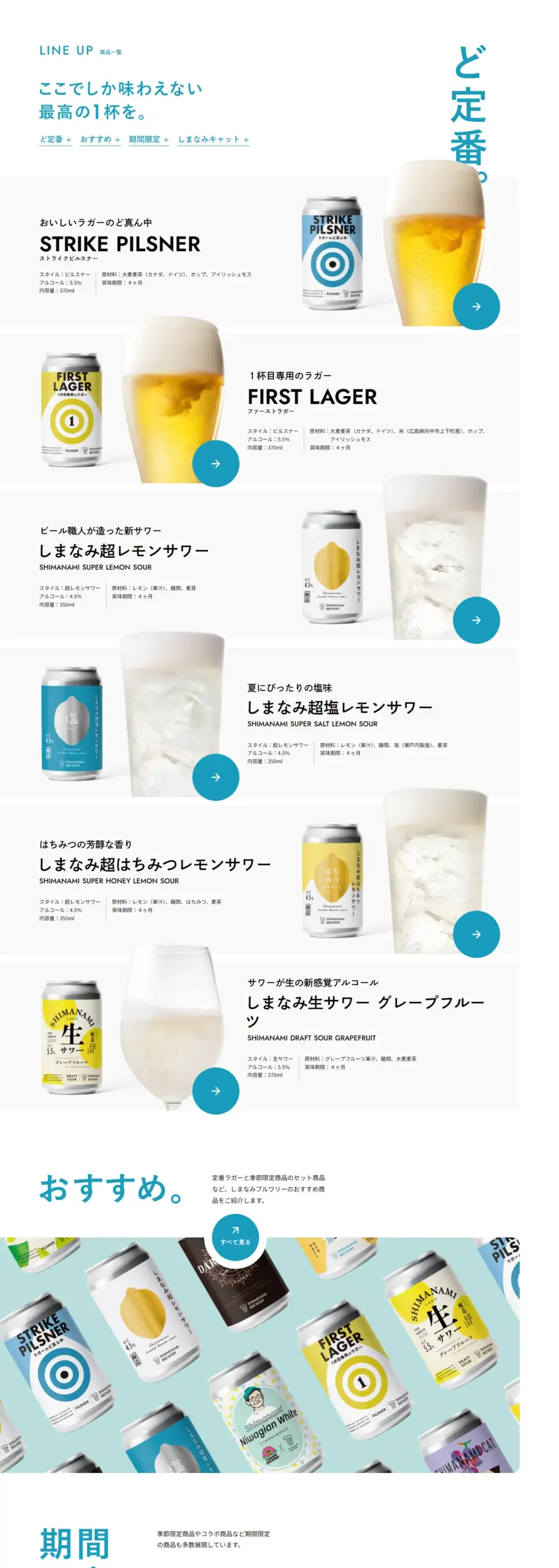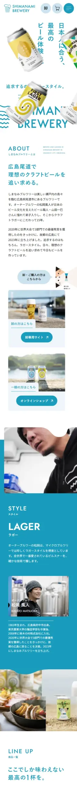 広島県尾道市にあるしまなみブルワリーの公式ブランドサイトです。王道のラガースタイルのど真ん中を突き詰めた「ストライピルスナー」をはじめ、1杯目専用のラガー「ファーストラガー」や季節のフルーツを用いたデザートビール「しまなみキャット」などしまなみ海道をのぞむ尾道から個性豊かな商品を展開しています。