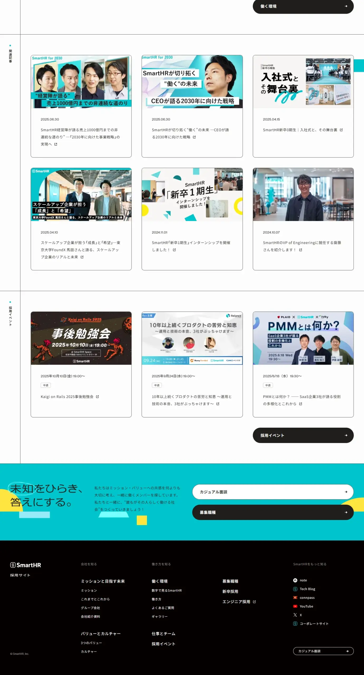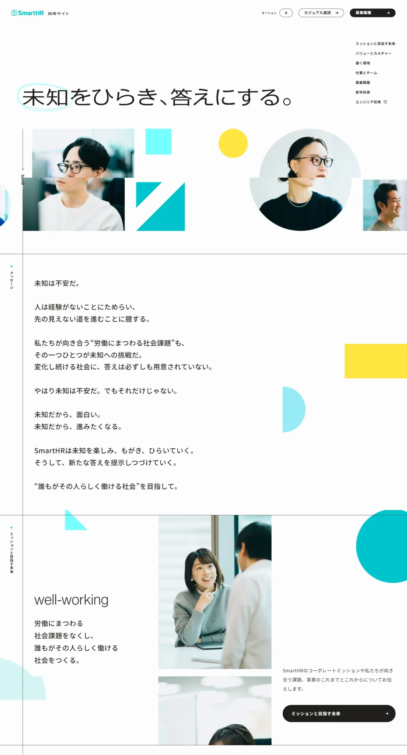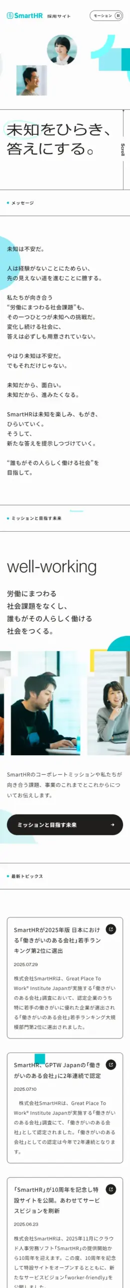 SmartHRの採用サイトです。コーポレートミッションである“well-working 労働にまつわる社会課題をなくし、誰もがその人らしく働ける社会をつくる。”を実現する仲間を募集しています。