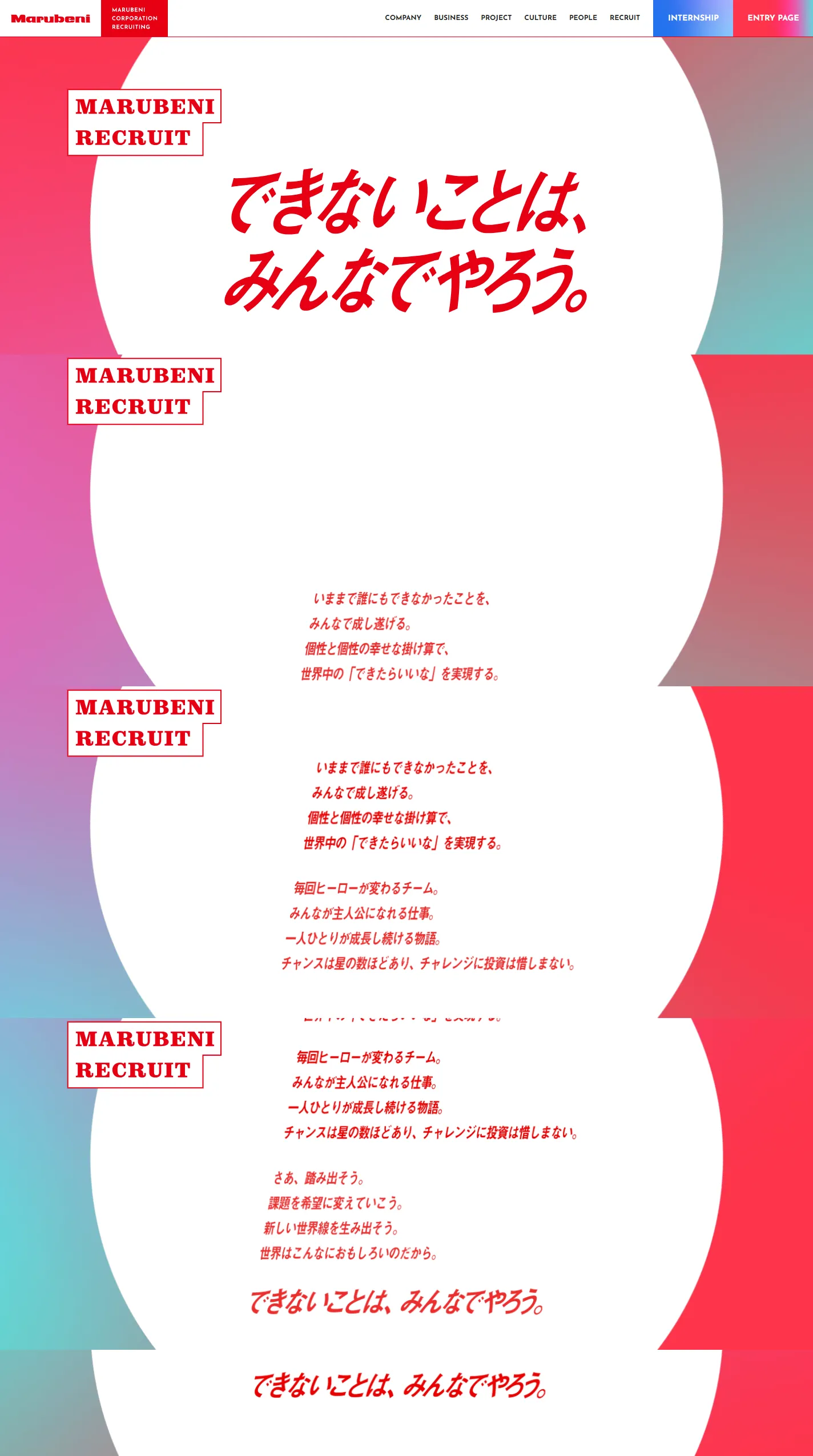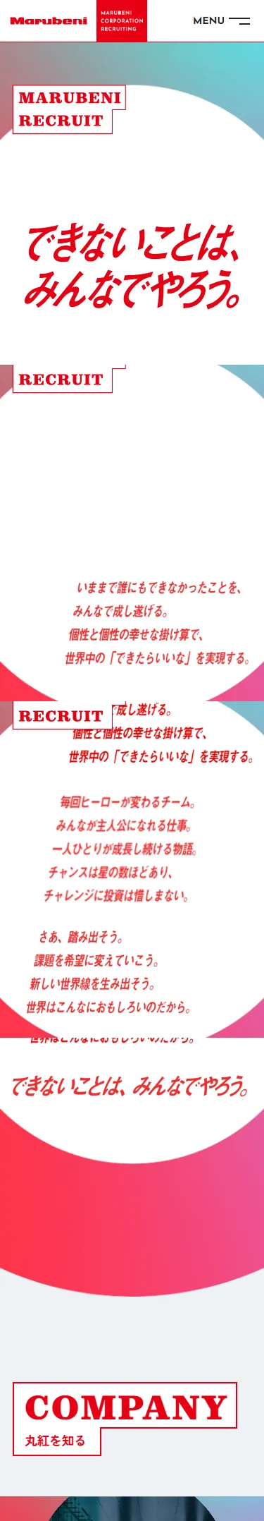 できないことは、みんなでやろう。 | Top | 丸紅株式会社 新卒・キャリア採用