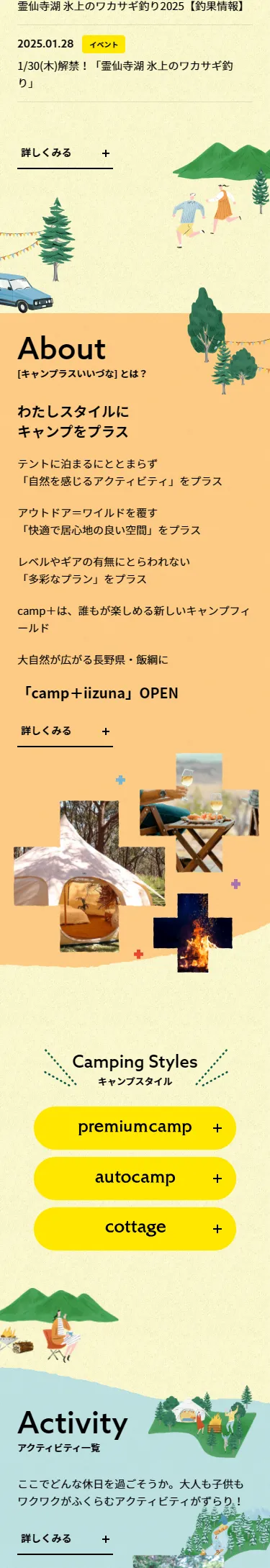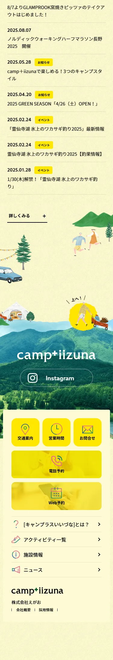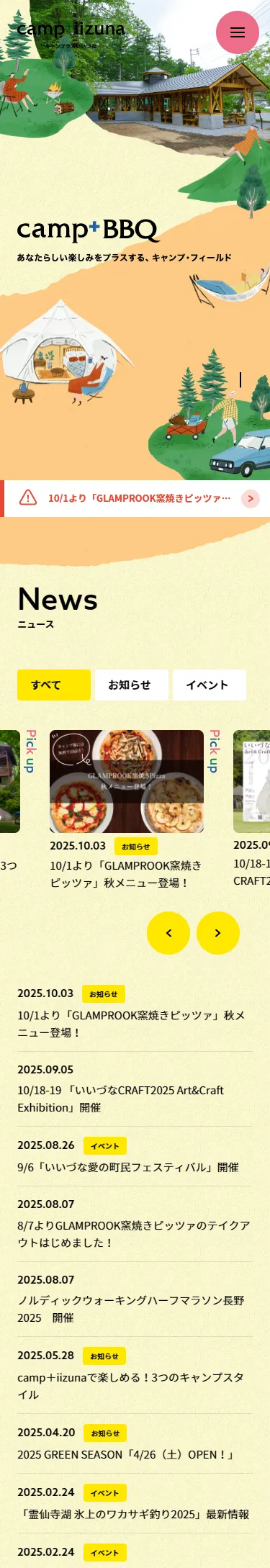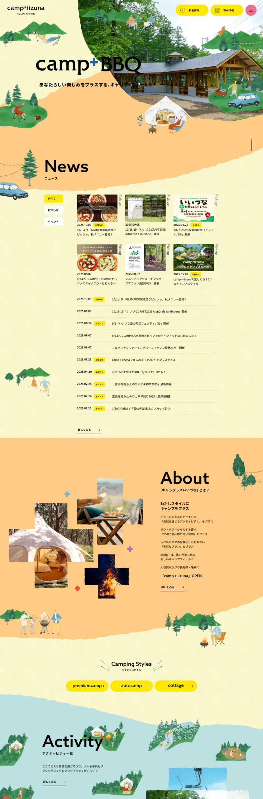 キャンプラスいいづな(飯綱東高原オートキャンプ場) – 長野市内から車で20分。長野県飯綱町の飯綱高原に位置するキャンプ場です。本格ギアをご用意して、手ぶらで楽しめるキャンプやオートキャンプ、BBQや温泉などのアクティビティも充実。