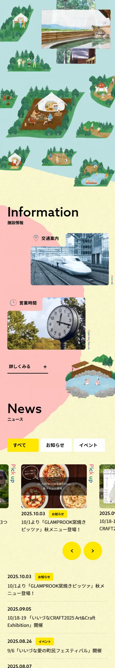 長野市内から車で20分。長野県飯綱町の飯綱高原に位置するキャンプ場です。本格ギアをご用意して、手ぶらで楽しめるキャンプやオートキャンプ、BBQや温泉などのアクティビティも充実。