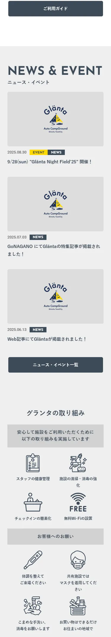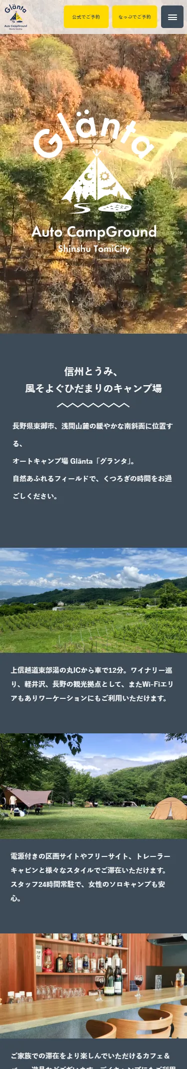 信州とうみ オートキャンプ場 Glänta グランタ | 長野県東御市のオートキャンプ場。東部湯の丸I.Cから15分、自然の中で、ゆったりとキャンプをお楽しみください。ワイナリー巡り、長野市や軽井沢などの観光拠点としてもご利用いただけます。通年営業。