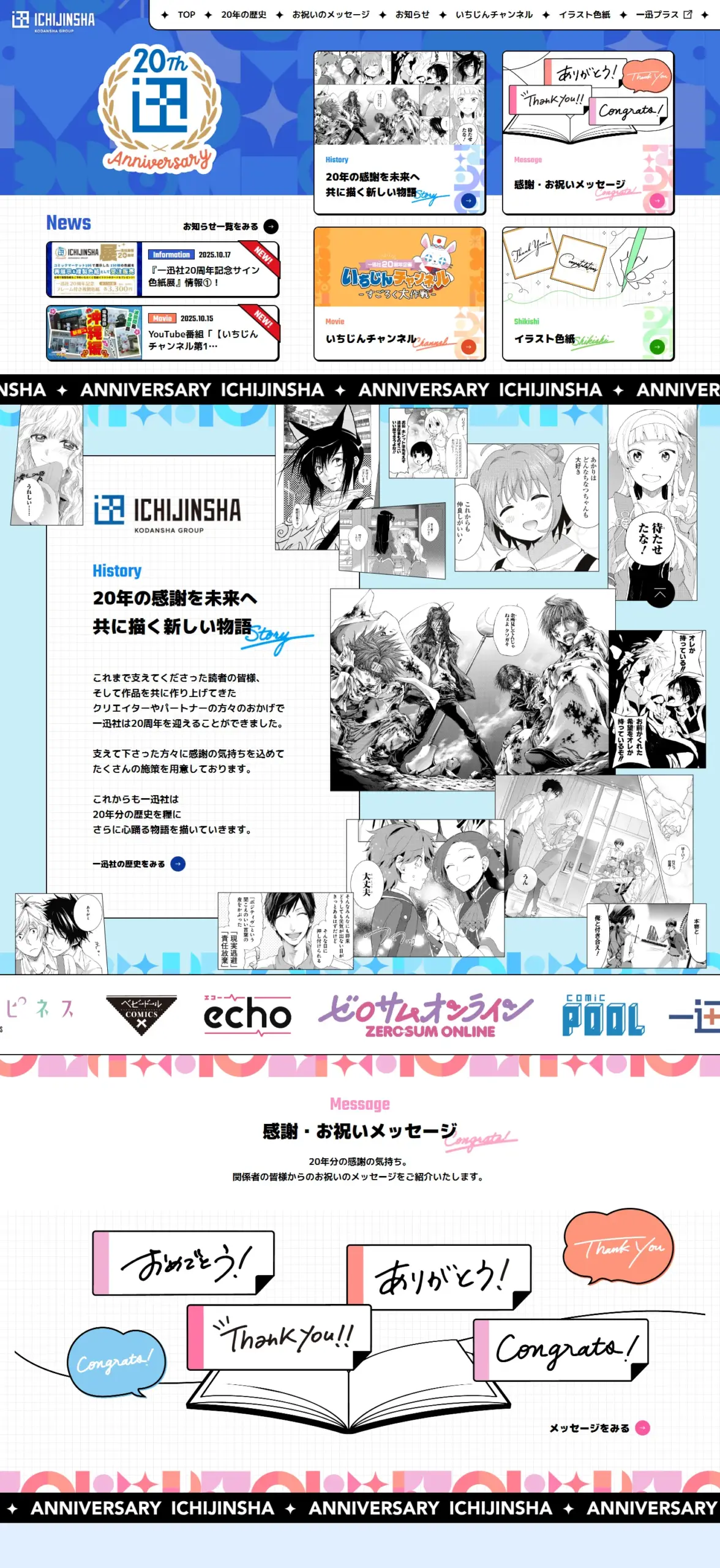 一迅社はおかげさまで20周年を迎えました。これまでの歩みを振り返り、特別企画やイベント情報をお届けする特設サイトを公開中。読者の皆様と紡ぐ新たな物語をお楽しみください。