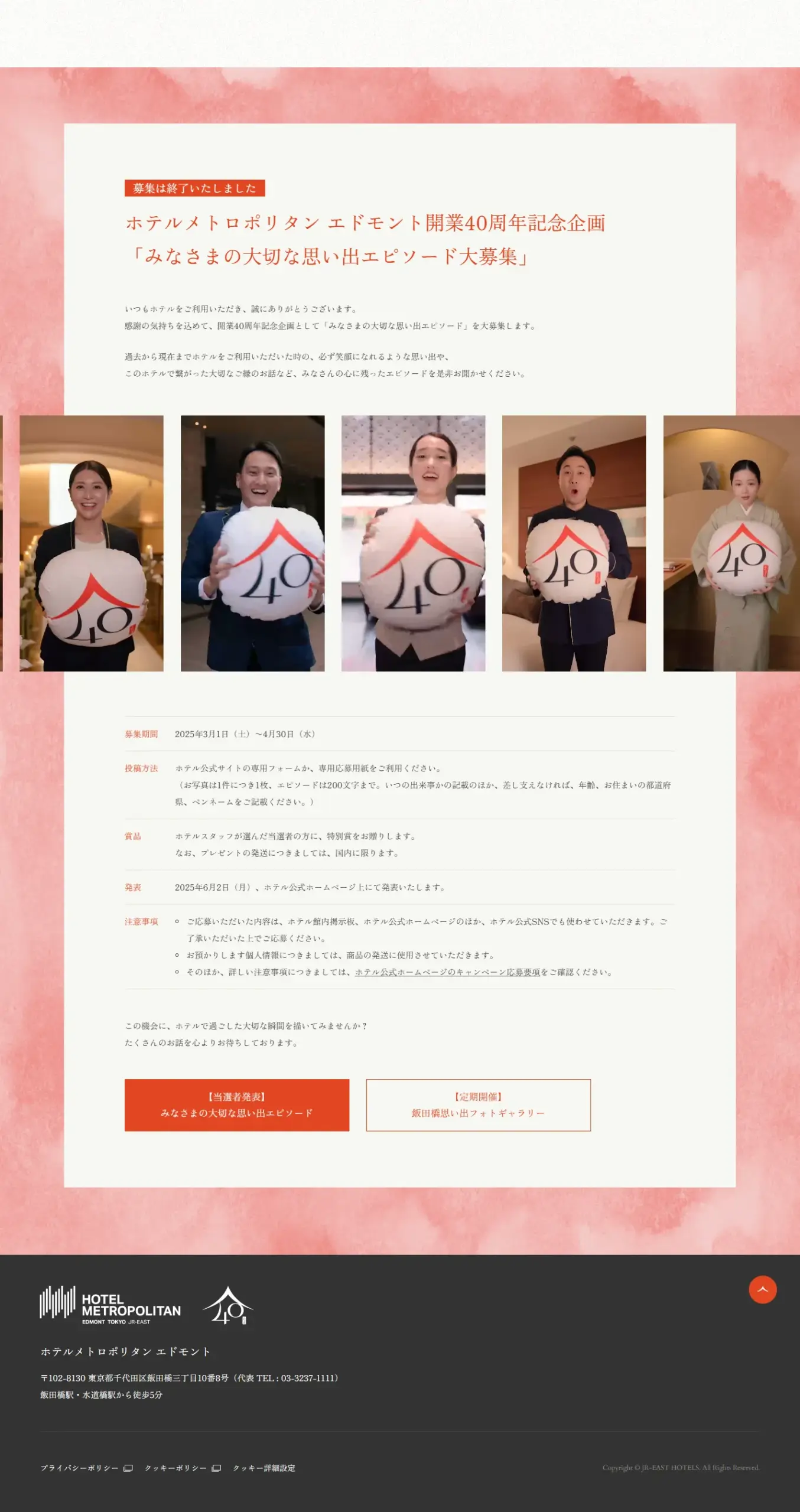 開業40周年記念ページ|ホテルメトロポリタンエドモント