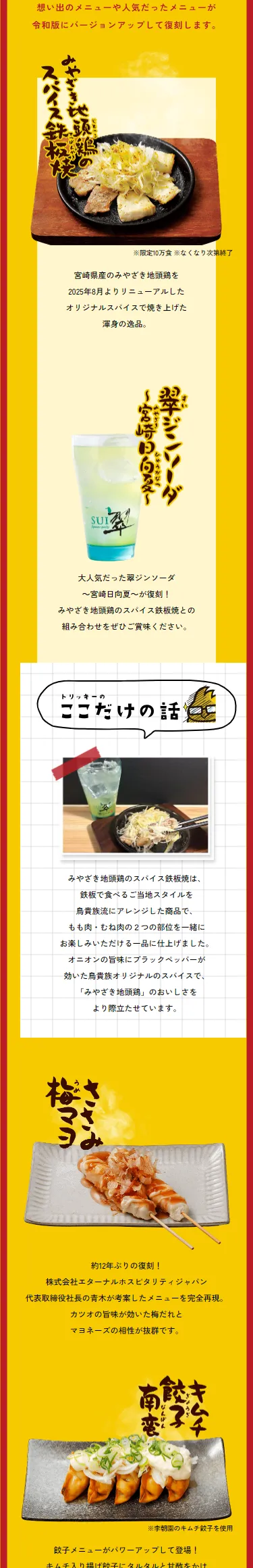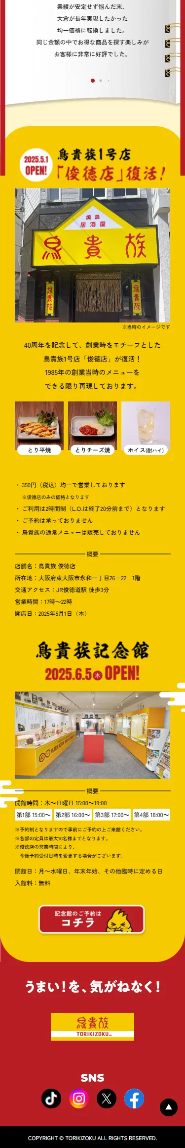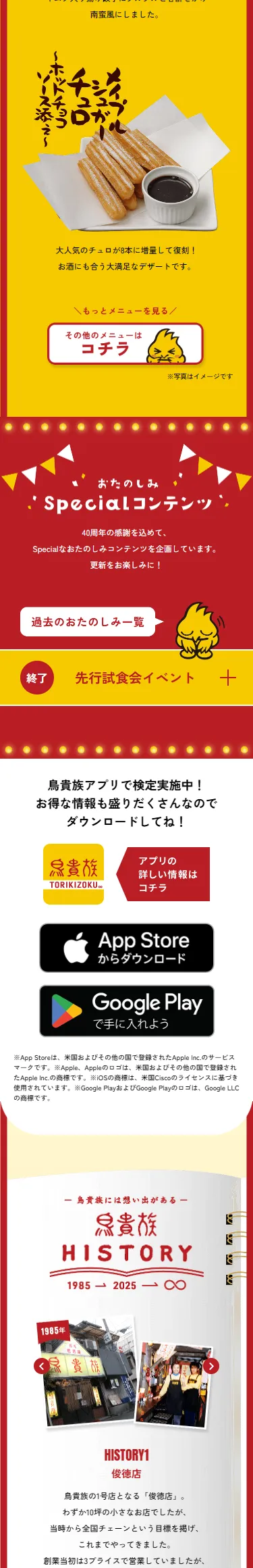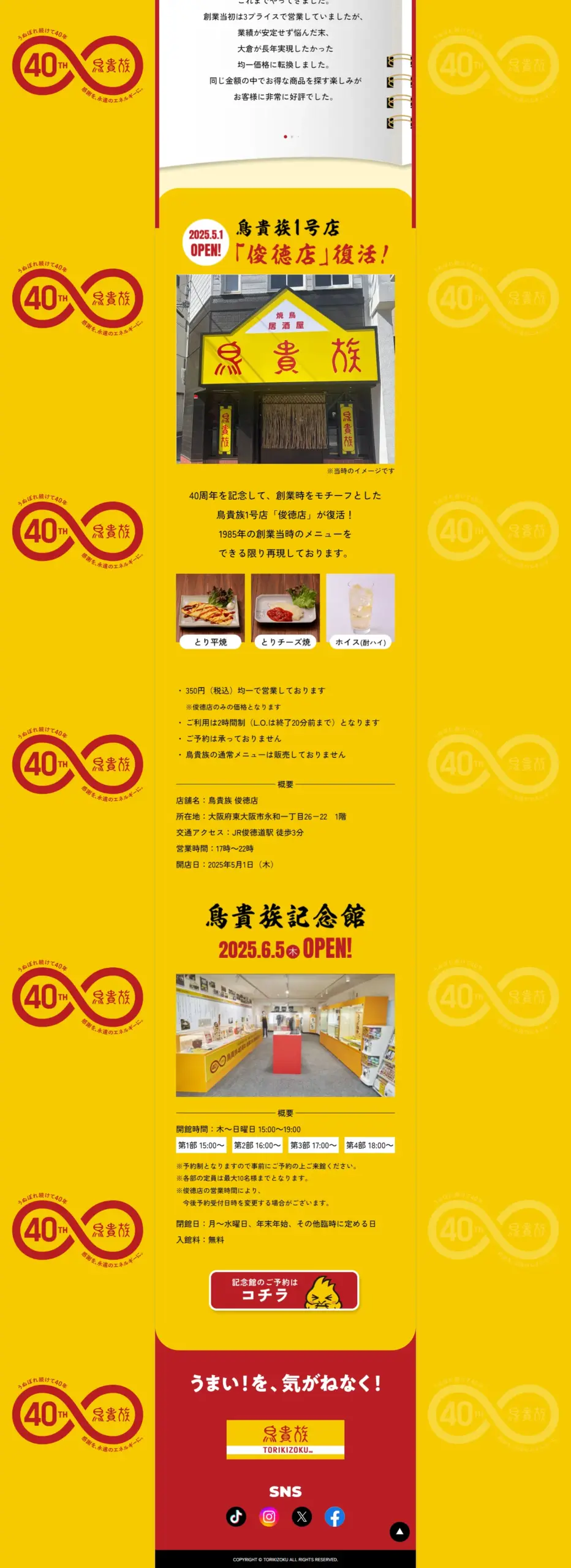 期間限定メニューが楽しめる創業40周年ありがとうフェアや鳥貴族HISTORYなどおたのしみコンテンツ公開中!