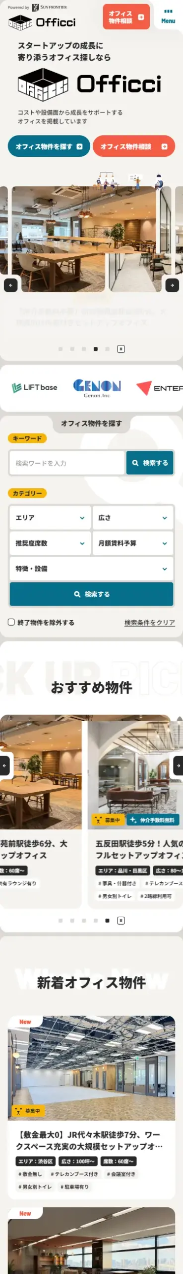 スタートアップ・ベンチャー企業向けのオフィス物件検索はOfficciにお任せ!自社所有物件を多数掲載しており、仲介手数料無料の居抜きオフィスやセットアップオフィスなど、他社にはない圧倒的なコストメリットをご提供いたします。