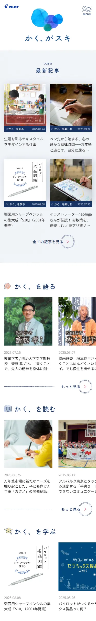 『かく、がスキ』は、株式会社パイロットコーポレーションが手書きの魅力をお届けするWEBメディア。いつも身近にある筆記具の魅力や手書きがもっと楽しくなるようなコンテンツを発信していきます。