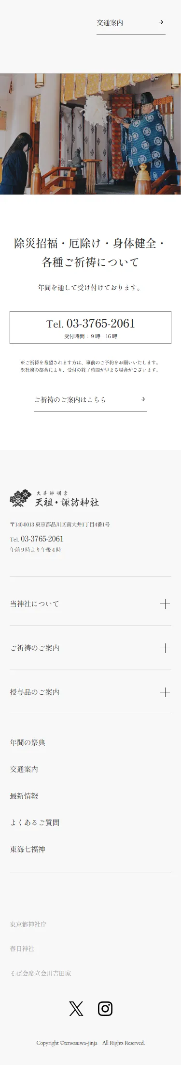品川区の天祖諏訪神社は、羽田空港や都心からのアクセスも良好ながら境内は穏やかな空間が広がっています。除災招福・厄除けなど皆様の祈りに寄り添ったご祈祷を執り行っております。