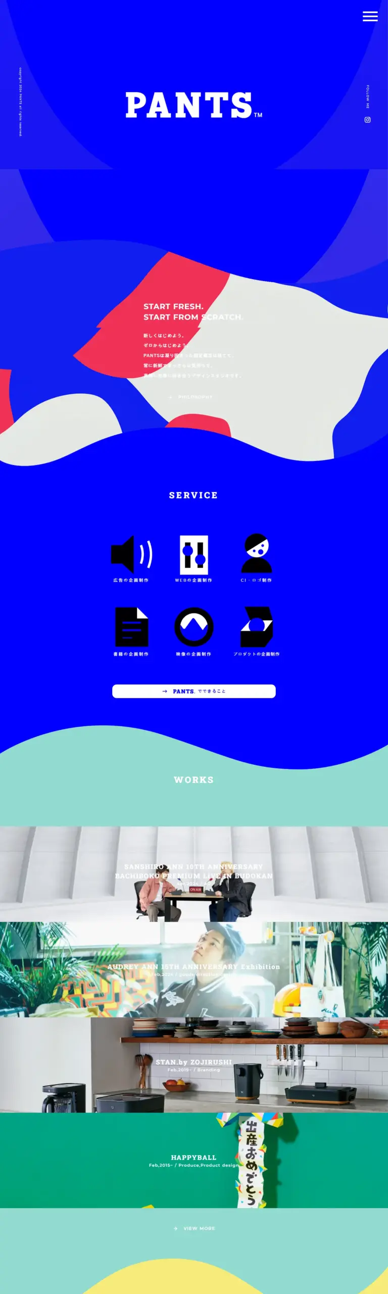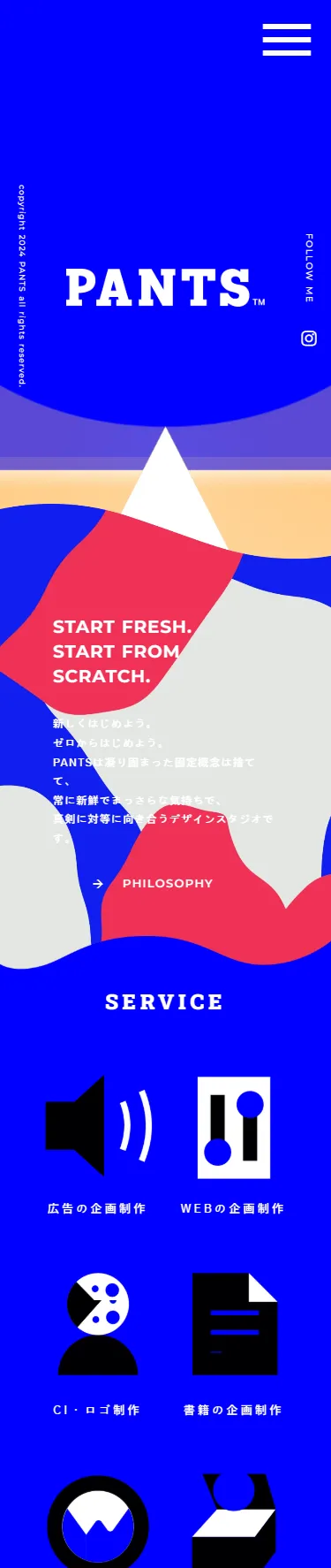 START FRESH.START FROM SCRATCH.新しくはじめよう。ゼロからはじめよう。PANTSは凝り固まった固定概念は捨てて、常に新鮮でまっさらな気持ちで、真剣に対等に向き合うデザインスタジオです。