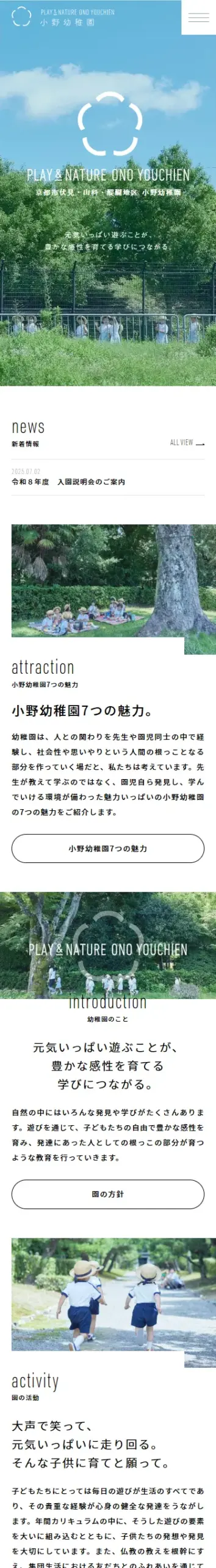 小野幼稚園は京都市伏見、山科、醍醐地区の幼稚園です。元気いっぱい遊ぶことが、豊かな感性を育てる学びにつながる。