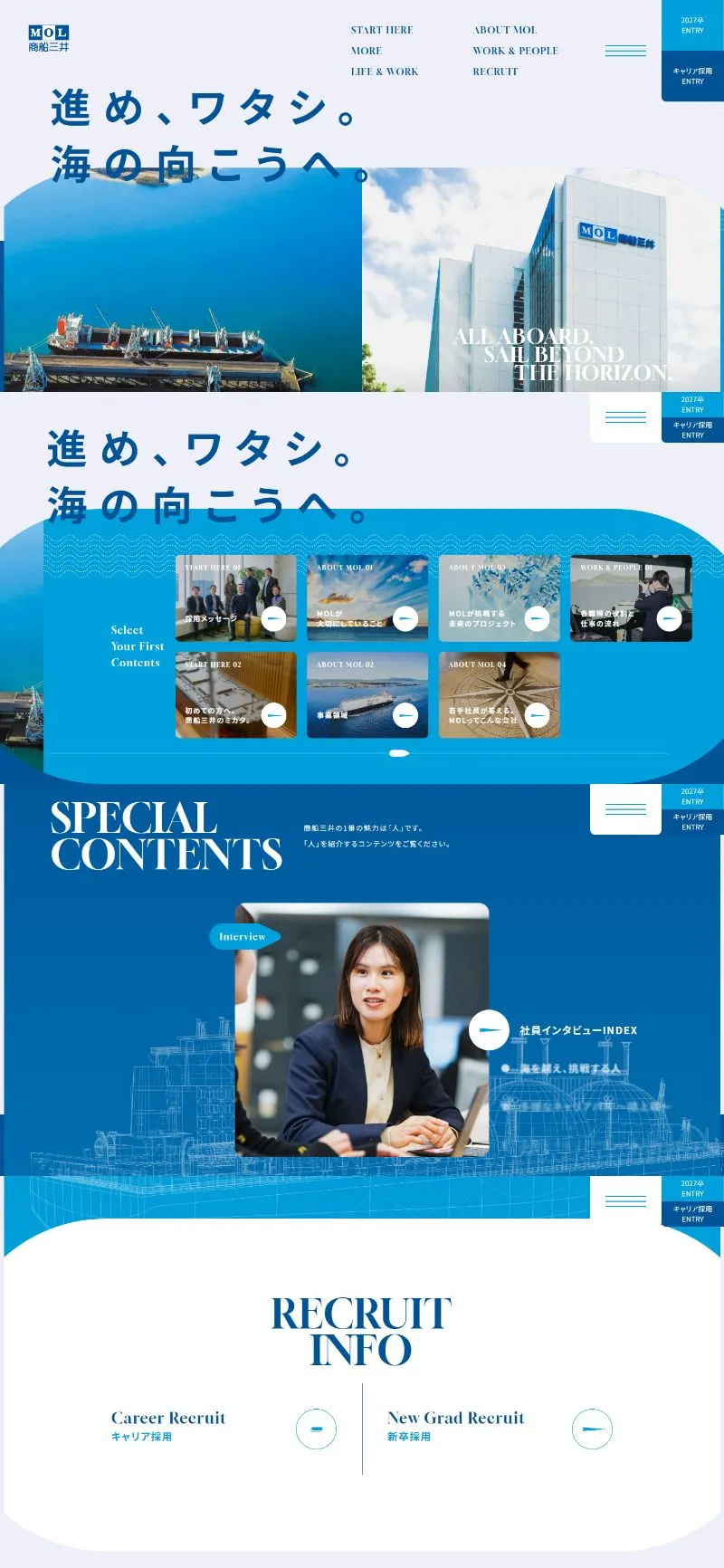 商船三井 採用サイト https://www.mol.co.jp/saiyou/ 採用サイト 物流・運輸・運送 誠実・信頼感 ブルー・青色 使用フォント: Gloock, Noto Sans JP サイト説明 商船三井 採用サイト ※掲載内容の削除や修正をご希望の場合は、迅速に対応いたしますので、恐れ入りますがお問い合わせフォームよりご連絡ください。 TOPに戻る