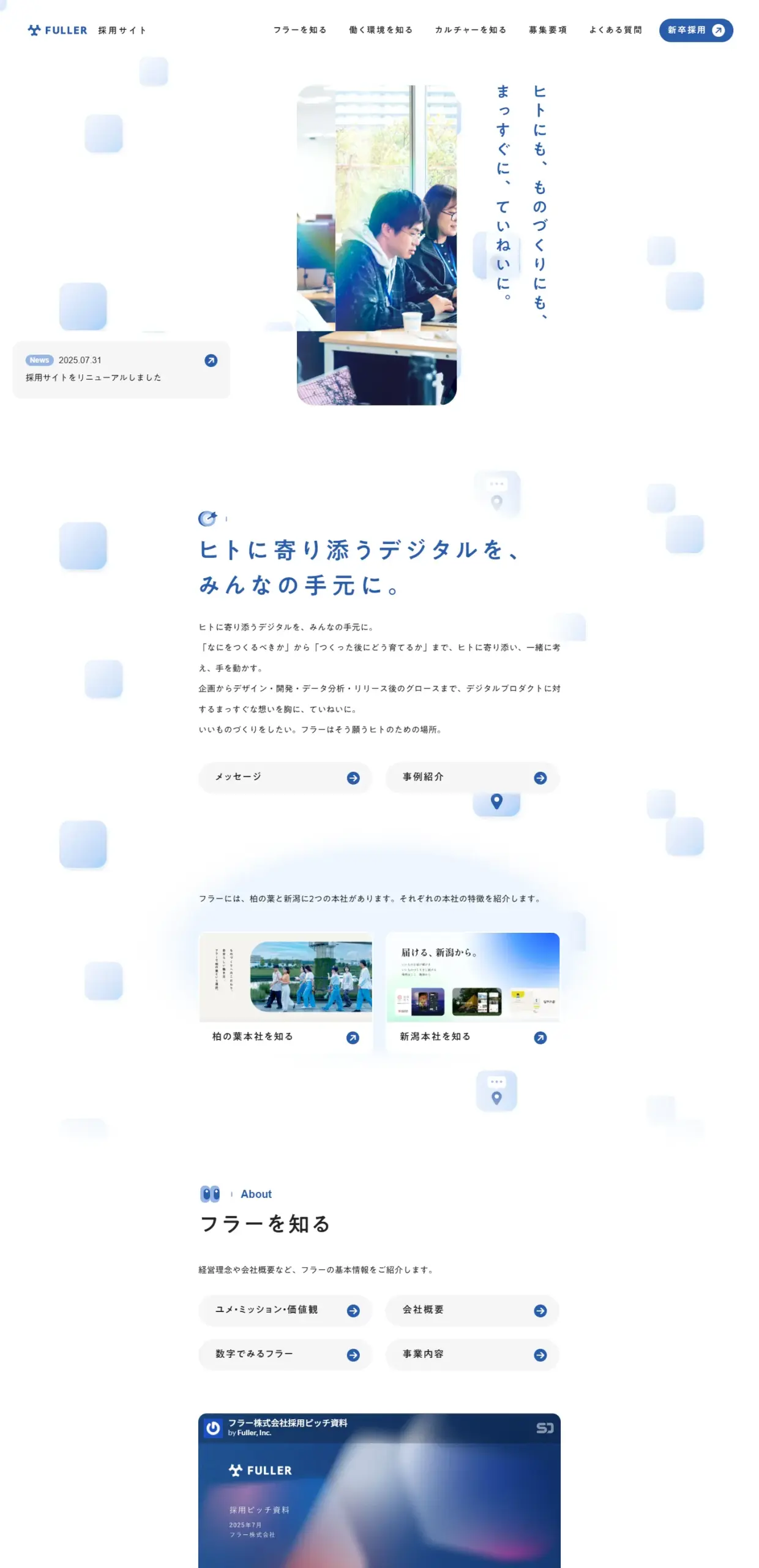 フラー株式会社の採用情報サイトです。事業や文化・価値観、働く環境、社員の姿、募集要項などを紹介します。