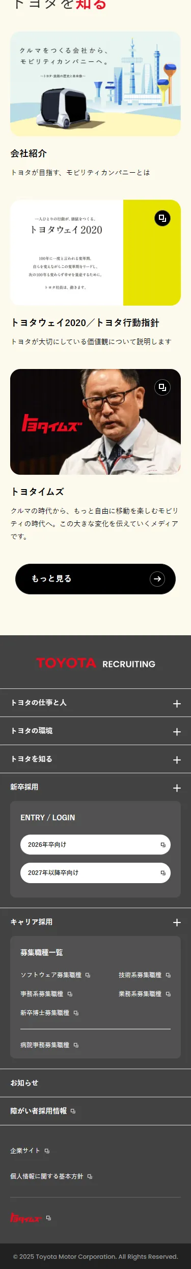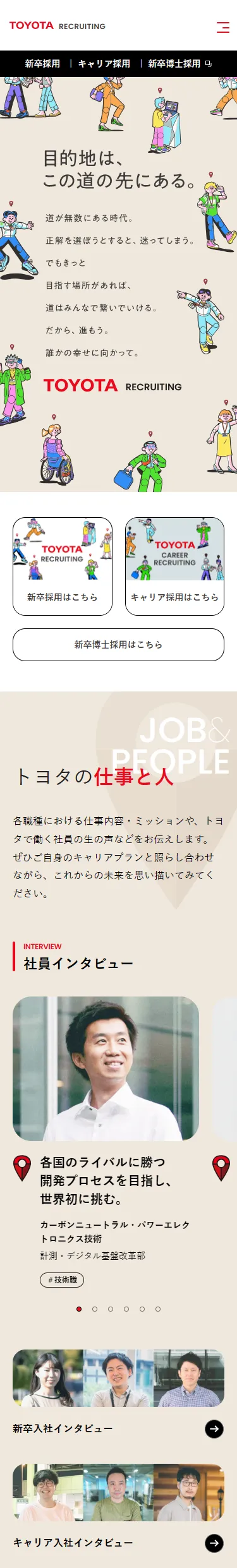 トヨタ自動車の採用情報サイトです。未来に向け「モビリティカンパニー」に生まれ変わるため、様々な職種の採用を行っています。