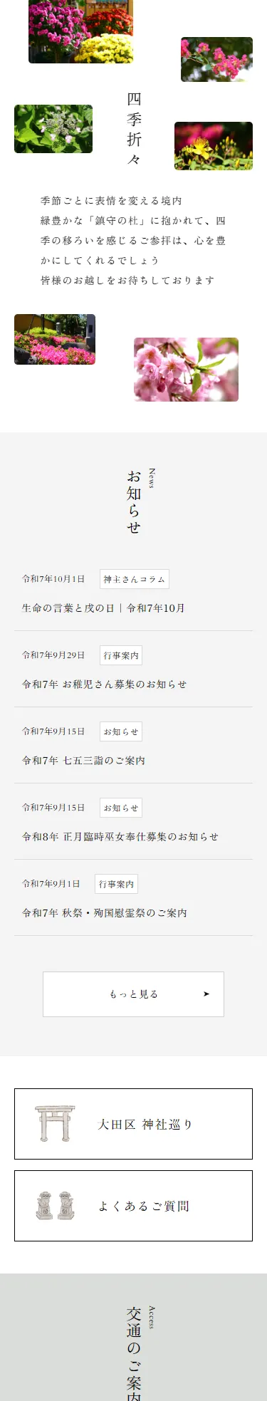 大田区の閑静な住宅街に佇む春日神社は、合格祈願・厄除け・安産祈願など皆様の祈りに寄り添ったご祈願を執り行っております。駅からほど近いため、折に触れてぜひご参拝ください。
