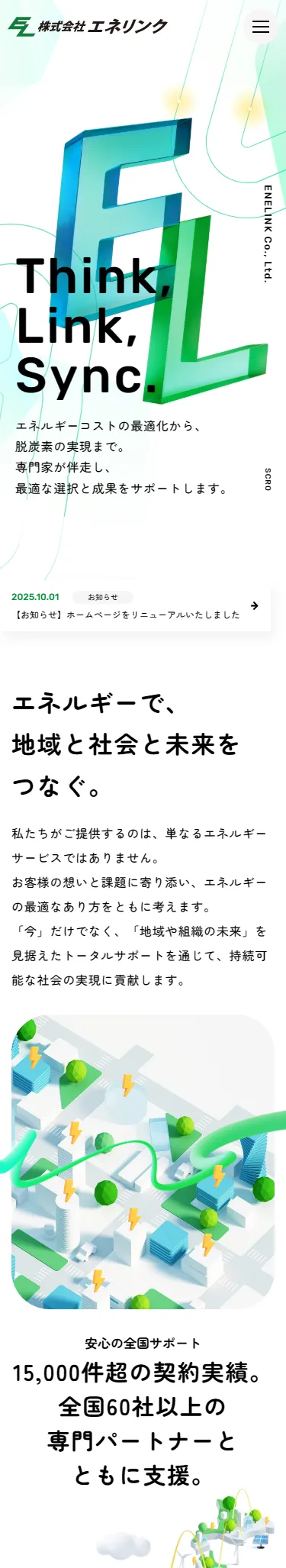 エネリンクはお客様のビジョンや課題に寄り添い、「今」だけでなく「未来の経営戦略」まで見据えたエネルギーの最適なあり方をともに考え、総合的なサポートを提供します。