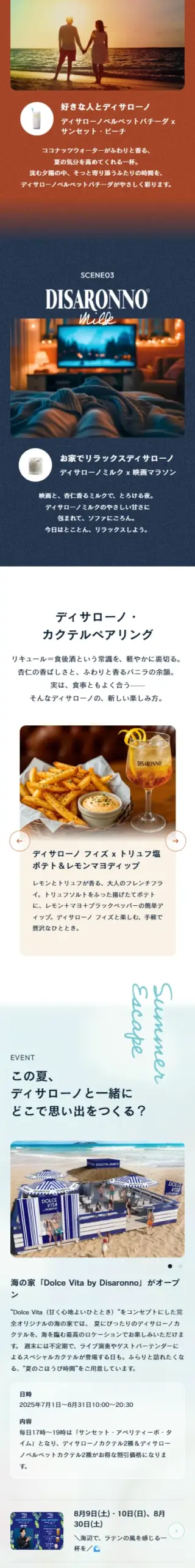 アマレットリキュール「ディサローノ」が贈る体験型プロモーションを開催。鎌倉・渋谷・千葉で、夏だけの特別なチル時間をお楽しみください。